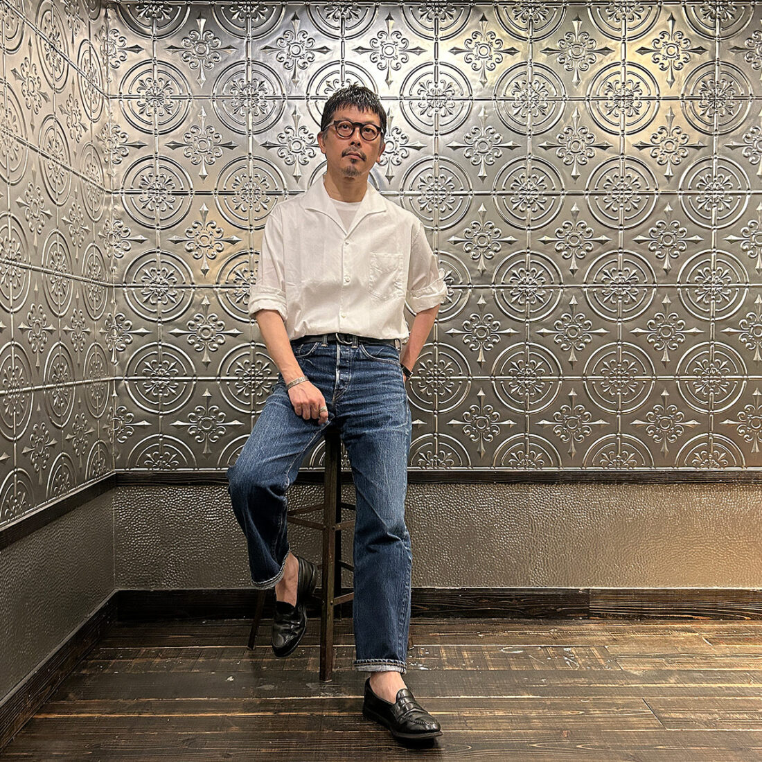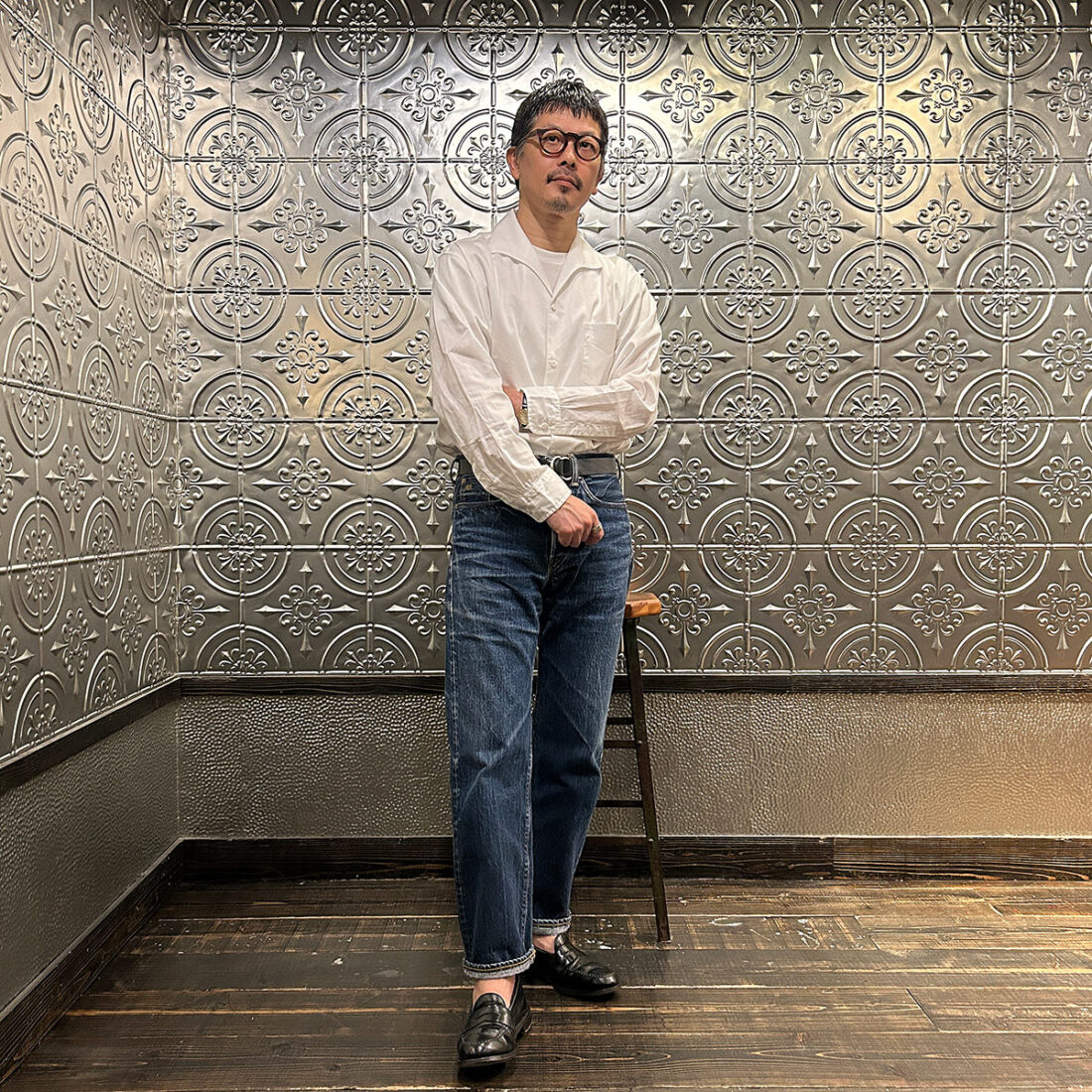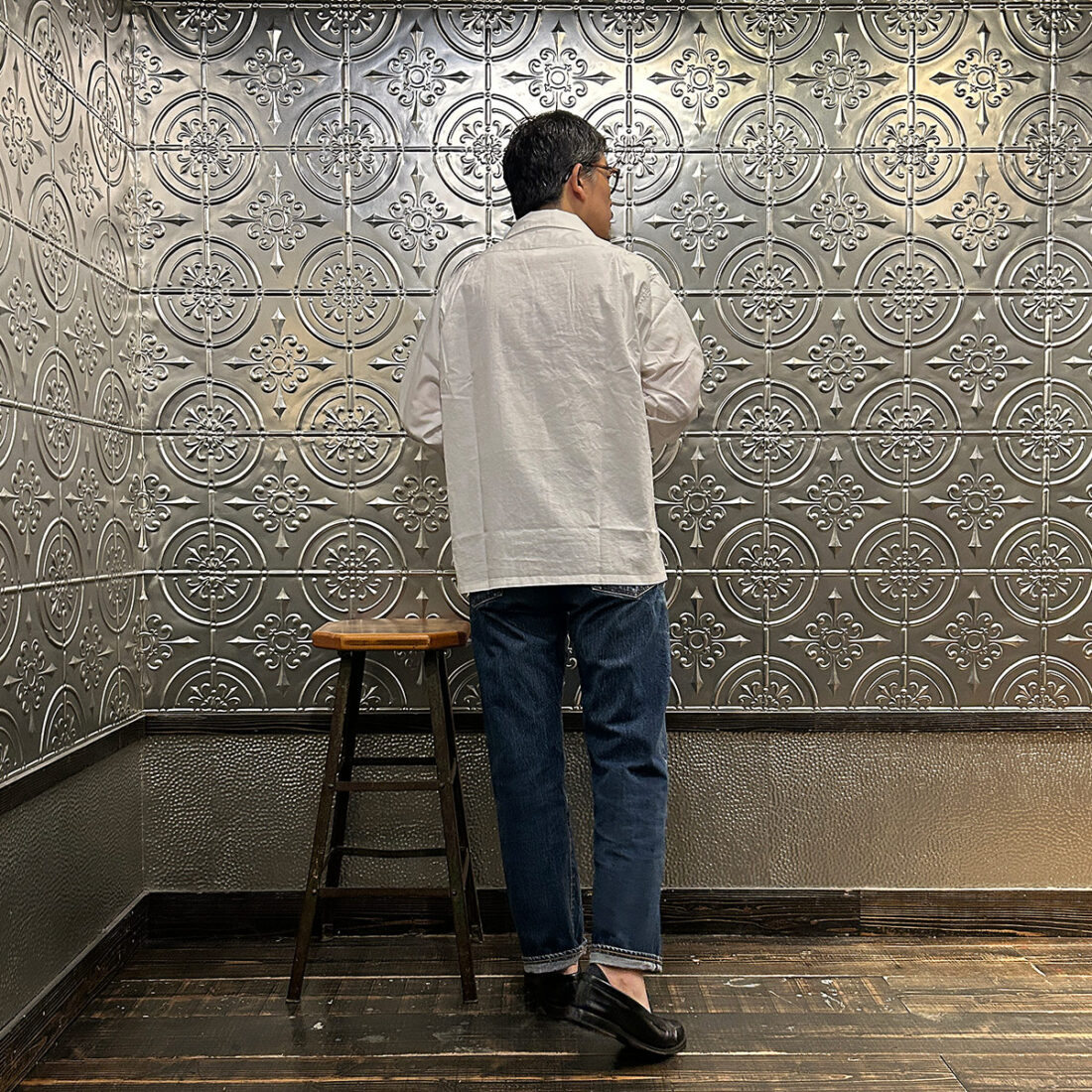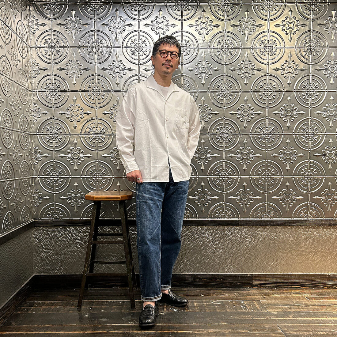 この襟型のシャツってカバーオールのようなワークウェアに合わせれば全体が少し小奇麗で大人な印象に、ジャケットに合わせると程よくヌケたカジュアルな雰囲気になるんです。