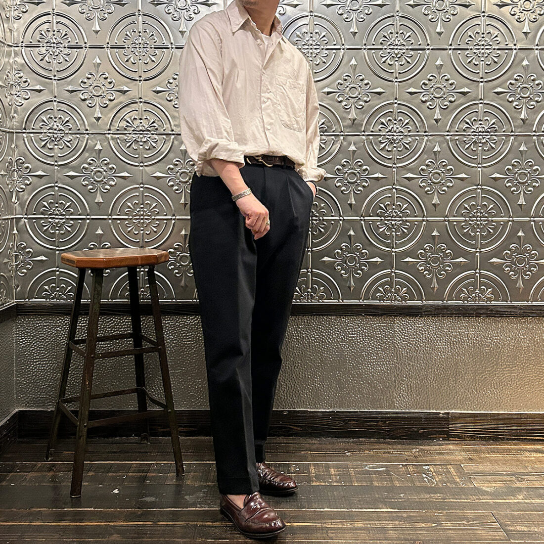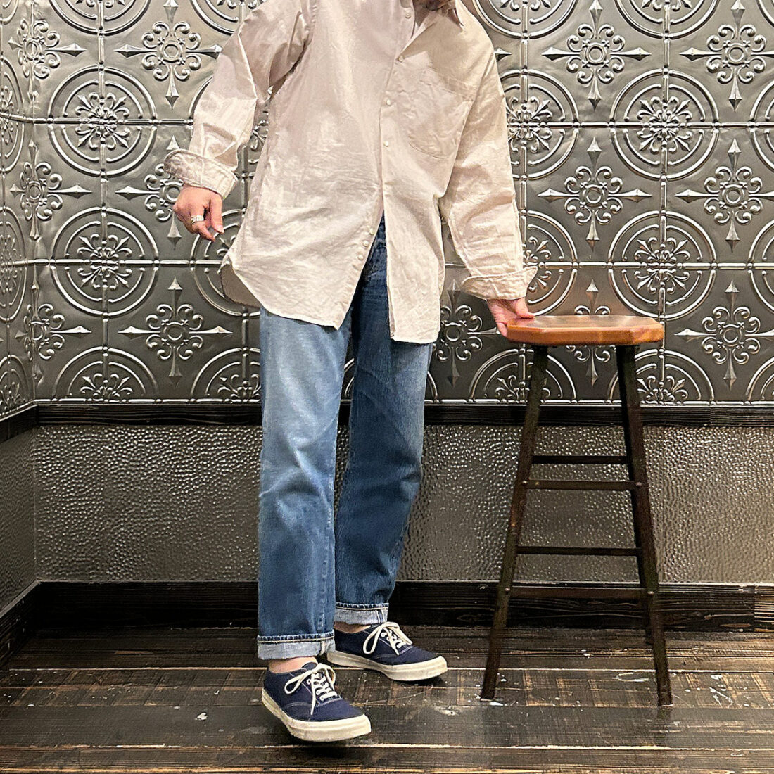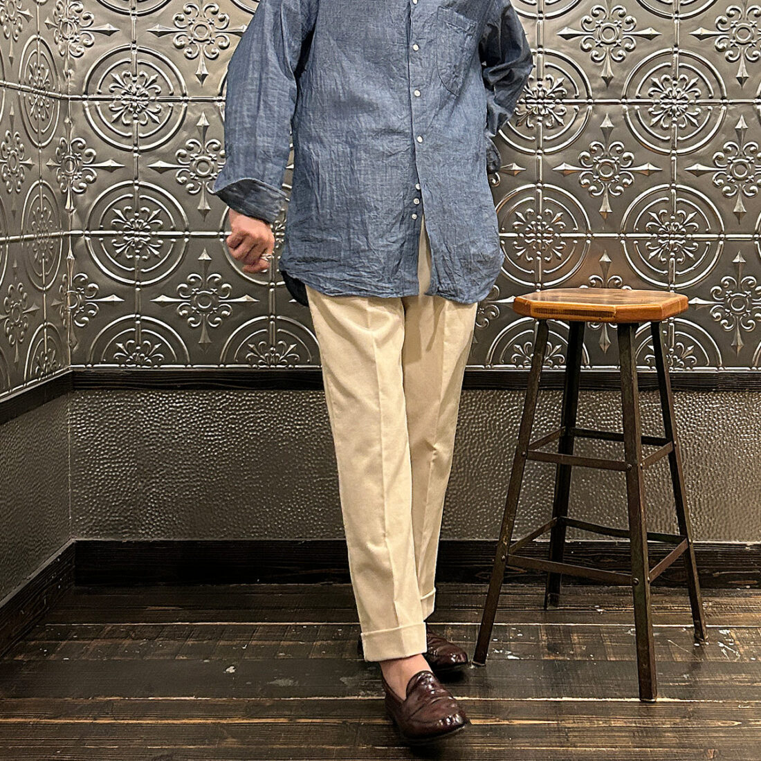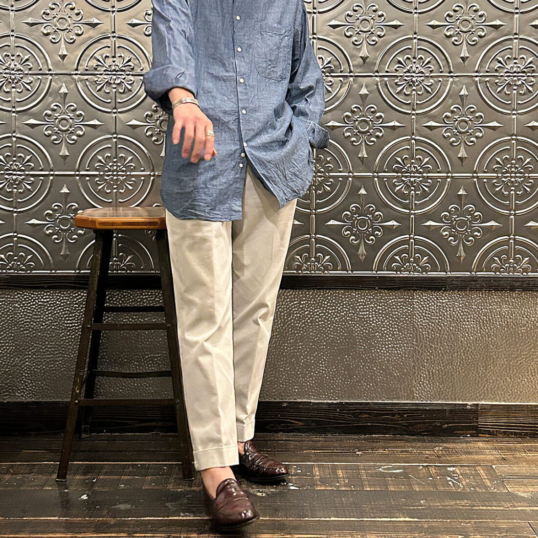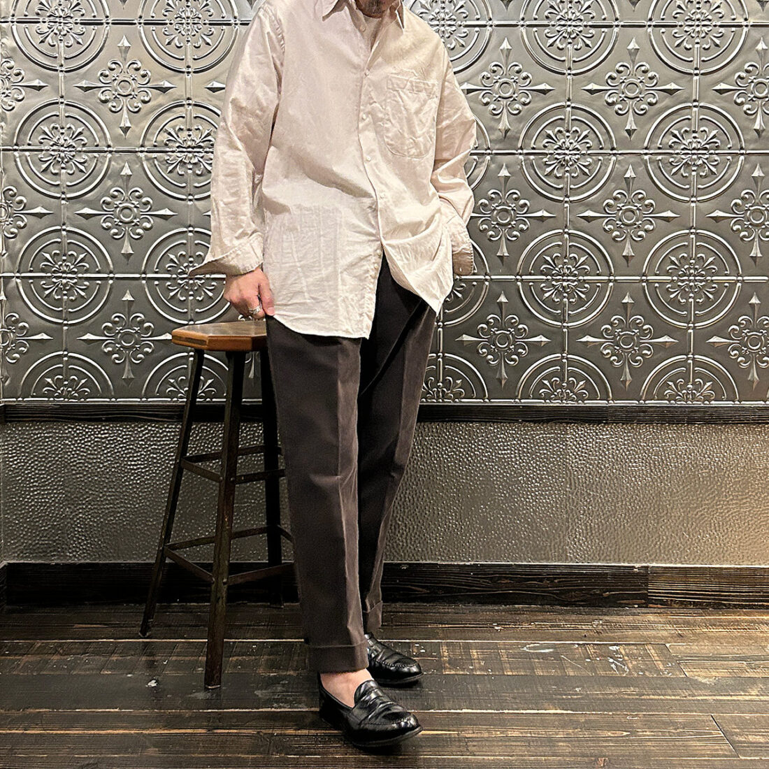 普段シャツの裾をパンツにインして着る私ですら裾を出してラフに着たいなと思える雰囲気。