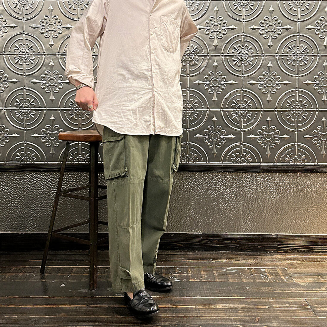 でもガチの「ワークシャツ」や「ミリタリーシャツ」と比べると全然違っていて、大人なドレスシャツ感がそこはかとなく漂ってるんですよね~。