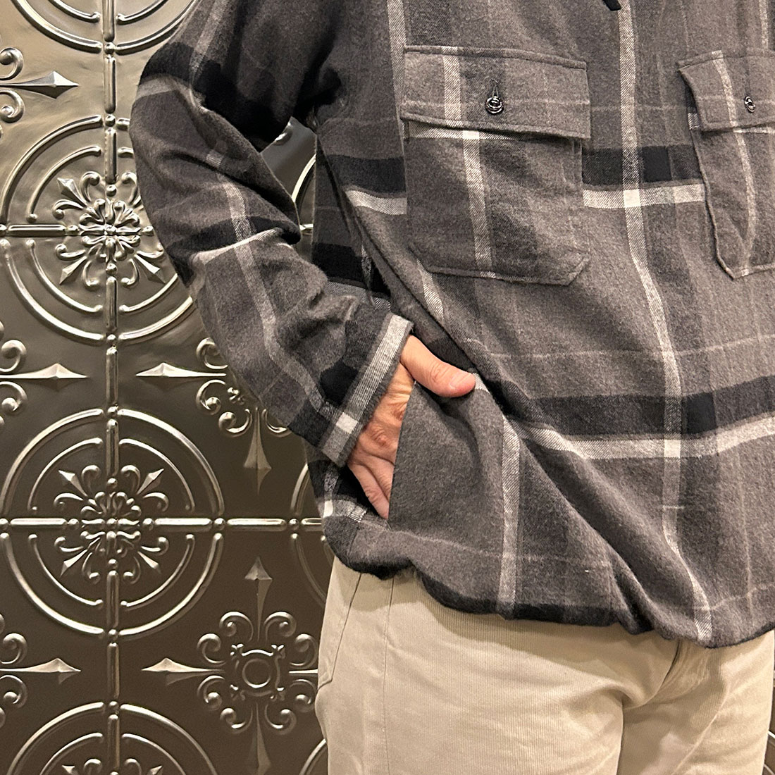 【ENGINEERED GARMENTS エンジニアドガーメンツ】アウター、インナーとしてスタイリングのポイントになってくれるカグールシャツ ← クリック or タップ