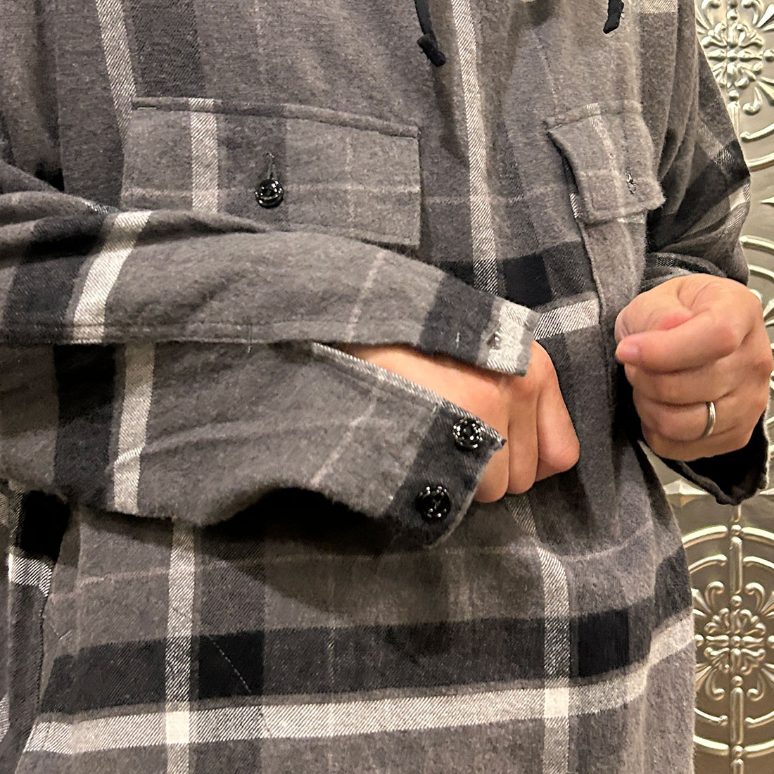 CAGOULE SHIRT COTTON BRUSHED BIG PLAID – GREY_BLACK