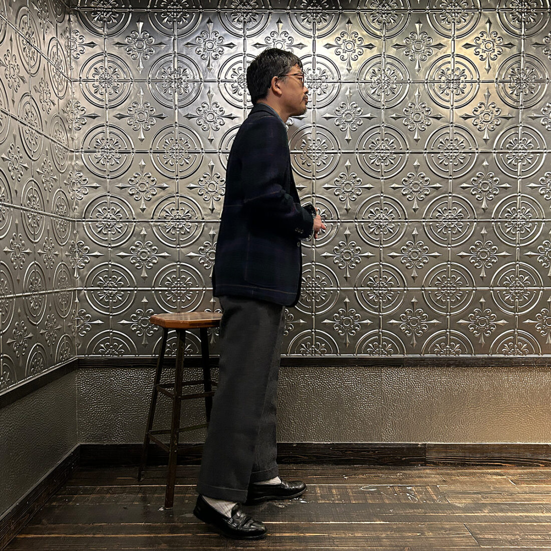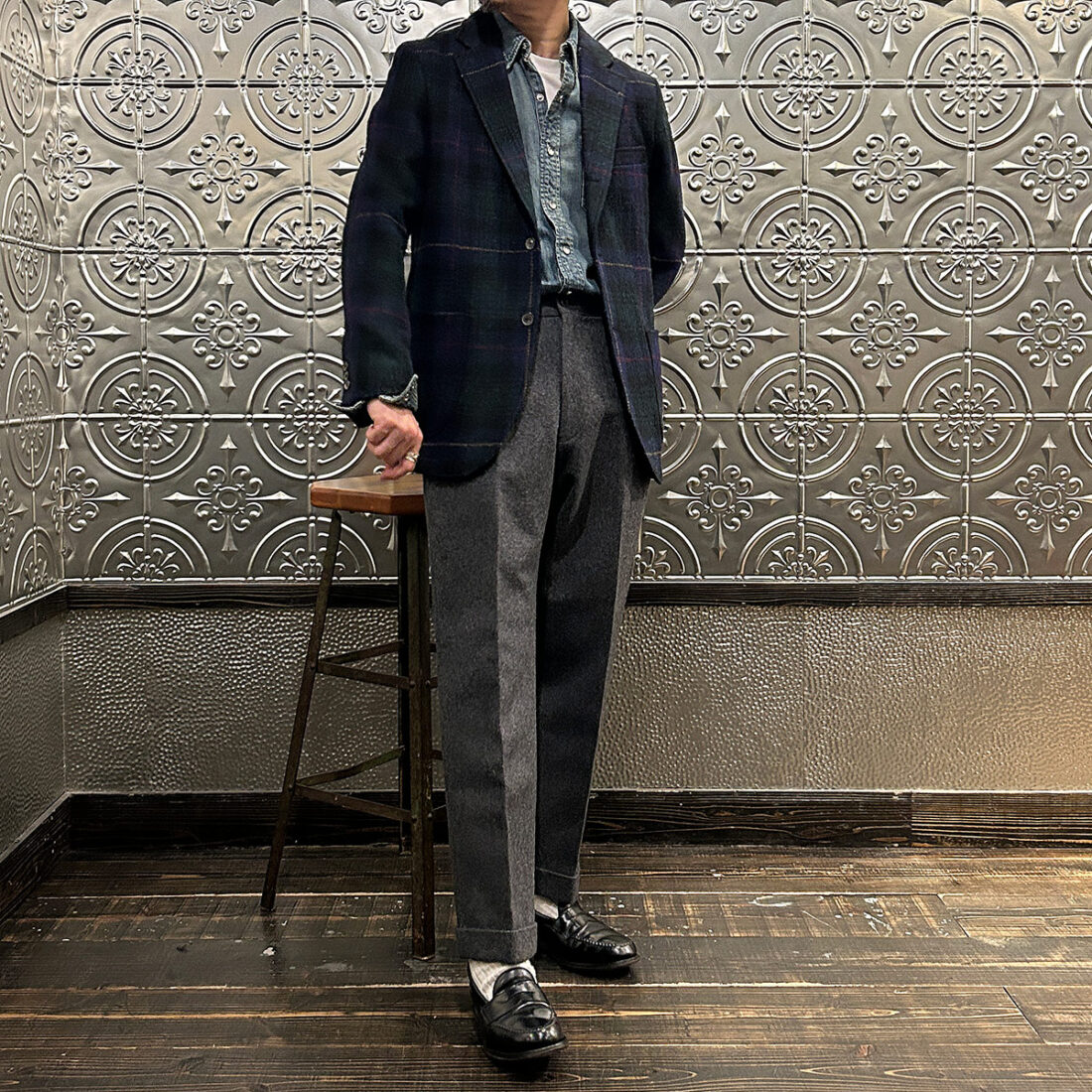 昔のハリスツイードのジャケットなんて硬くて重くて四角い「鎧」みたいな感じでしたが、これは着始めから凄く体に馴染んでナチュラルそのもの。ここから更に体に馴染みますから期待値相当高いですね。