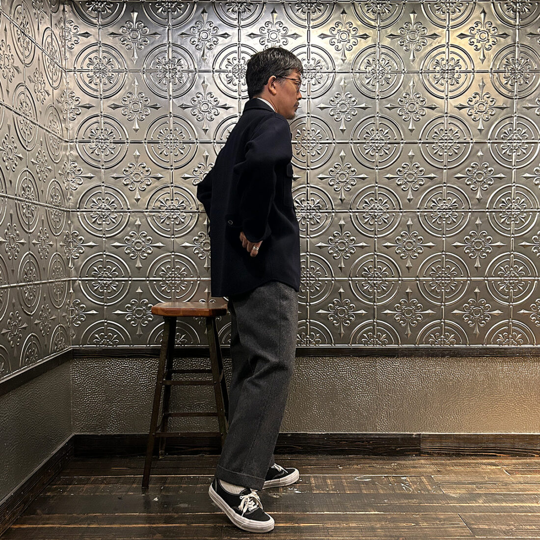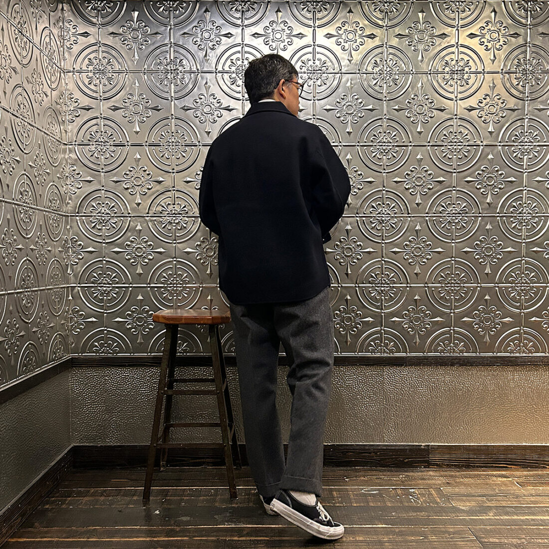 背面の深いインバーティッドプリーツが男前過ぎる(画像が暗くて分かりづらいかもしれませんが)。