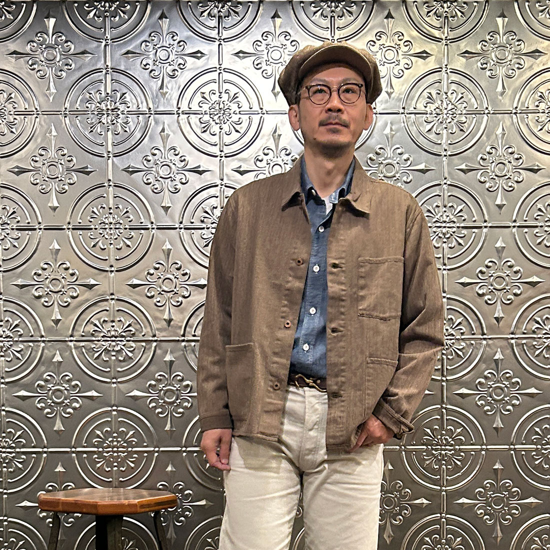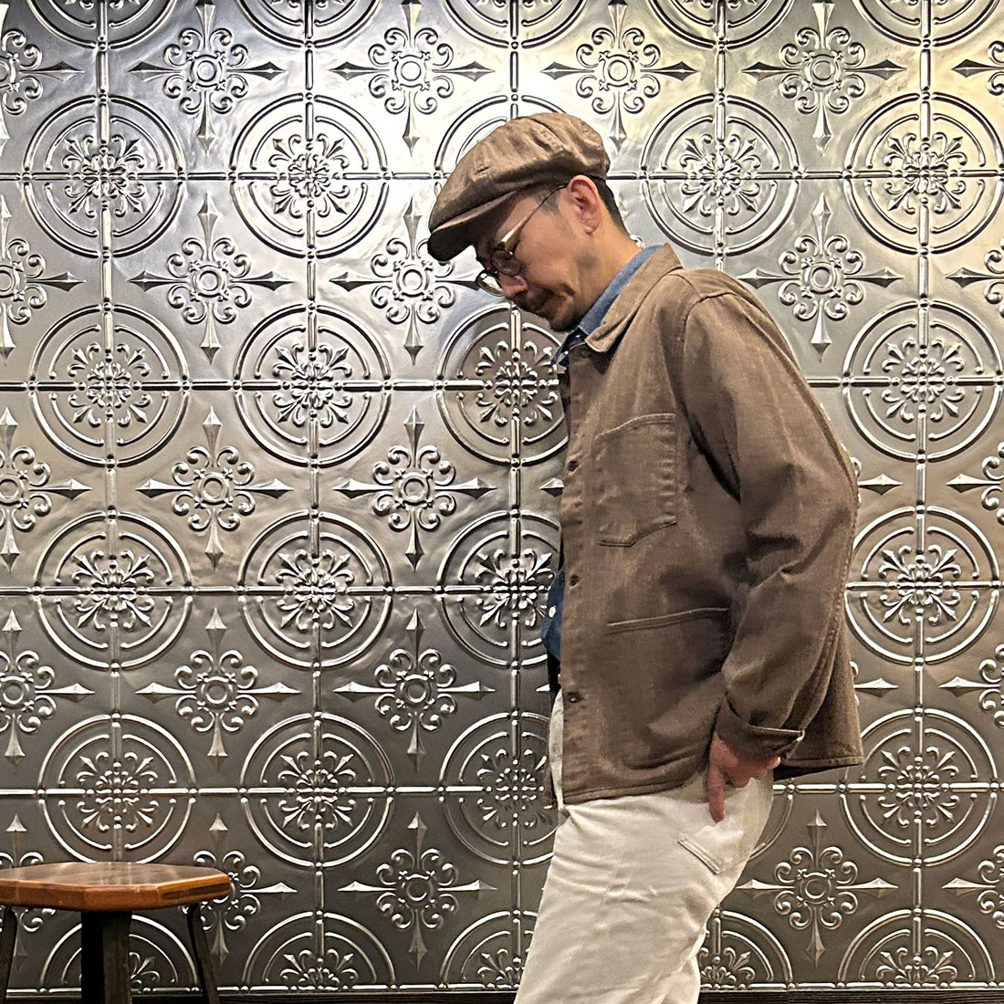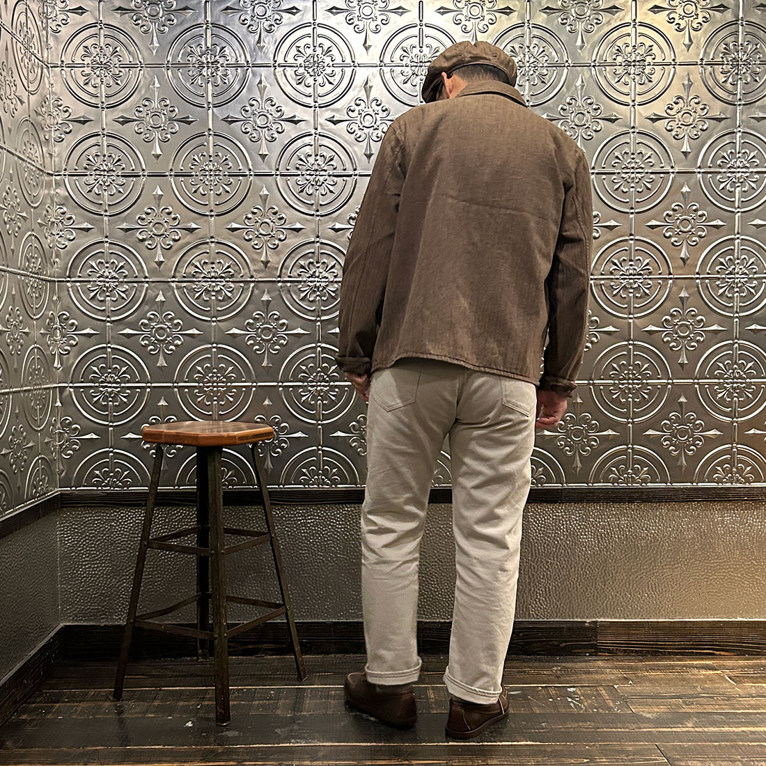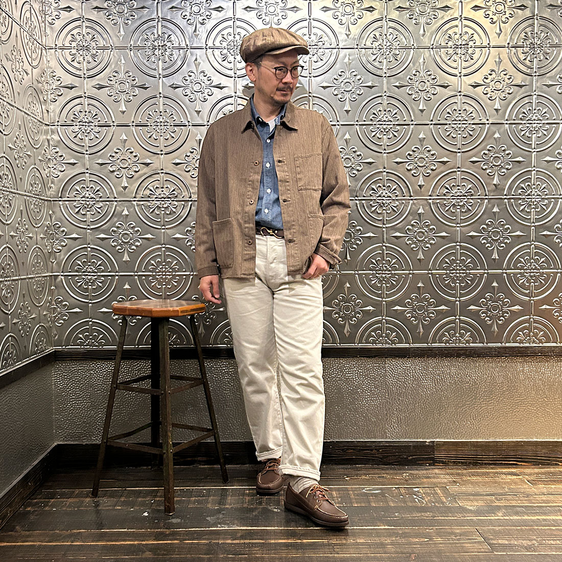 次もシャンブレー素材のワークシャツとしては王道のチノパンを合わせたスタイリング。王道のスタイリングでもどこかちょっと違いを感じます。