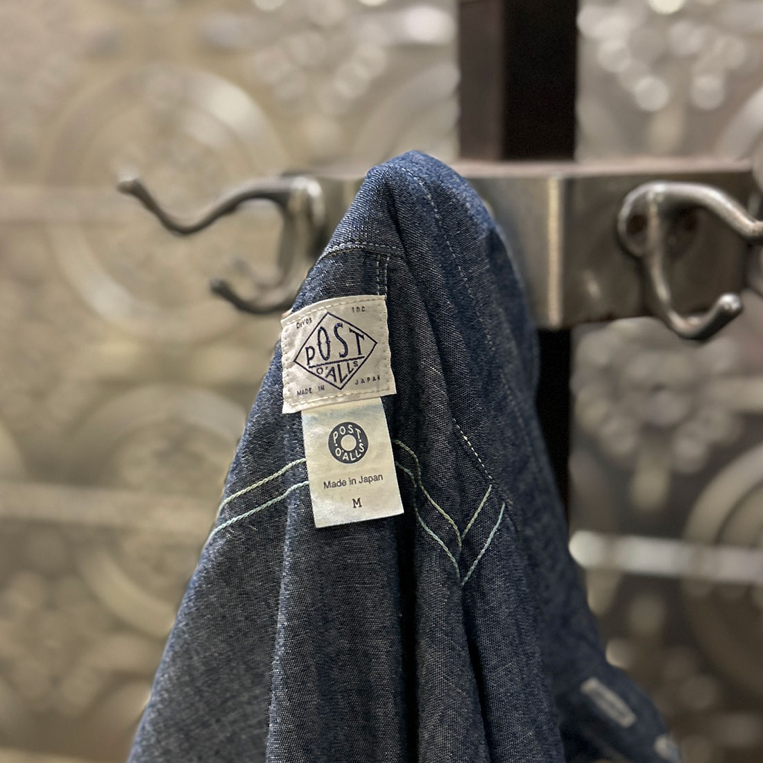 【POSTOVERALLS ポストオーバーオール】襟のデザインが秀逸なシャンブレー素材のワークシャツ ← クリック or タップ