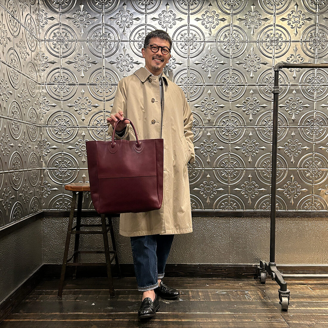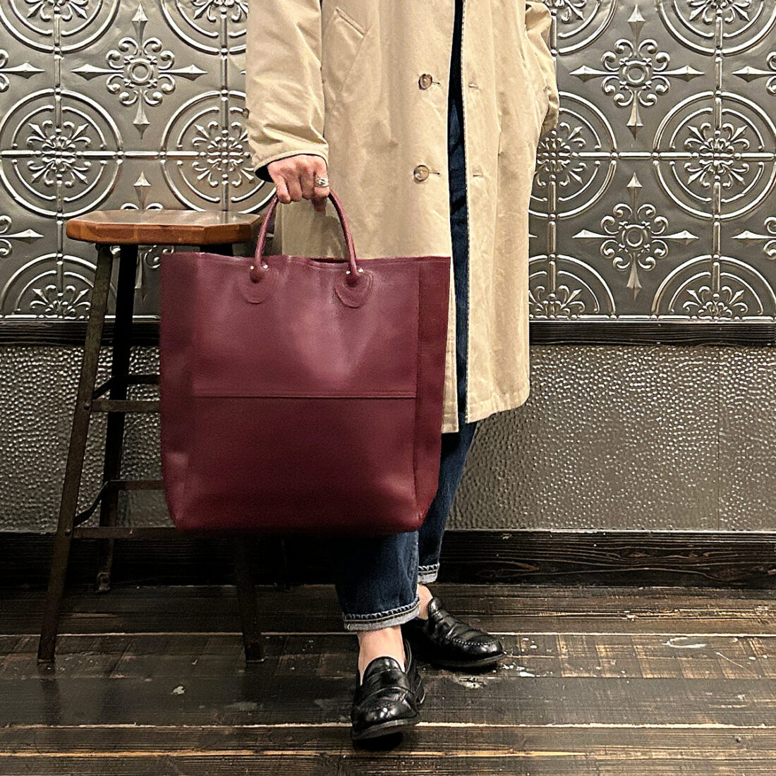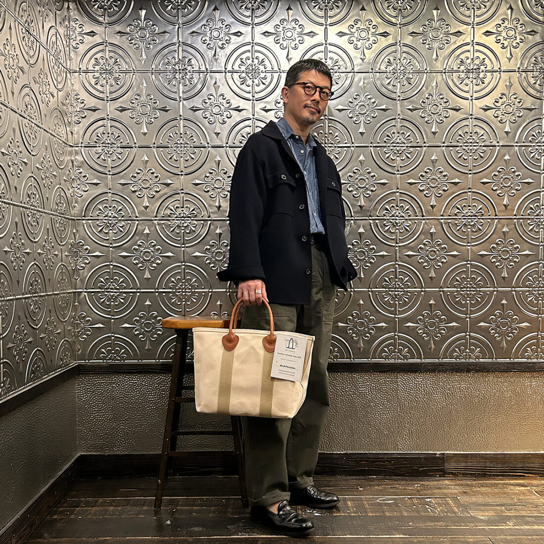 イベントのメインアイテム「Leather Handle Tote 80s レザーハンドルトート80s」を持ってみました。