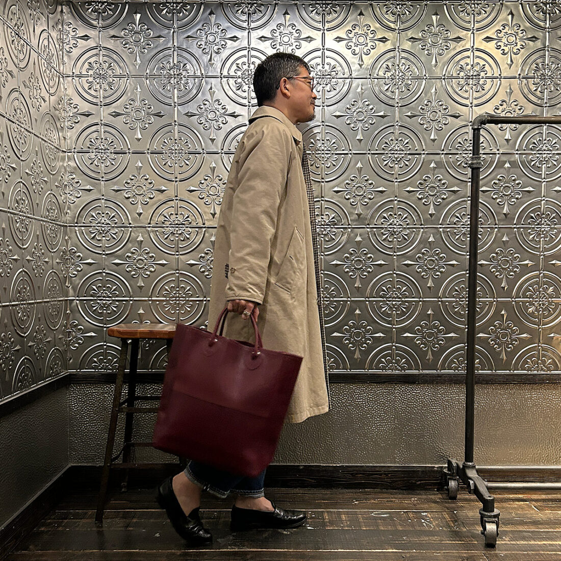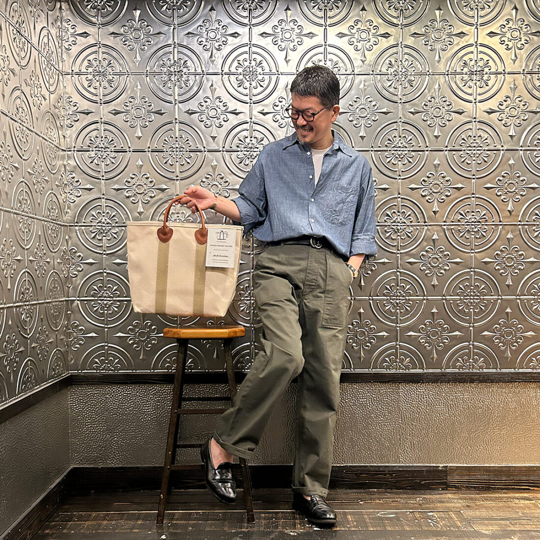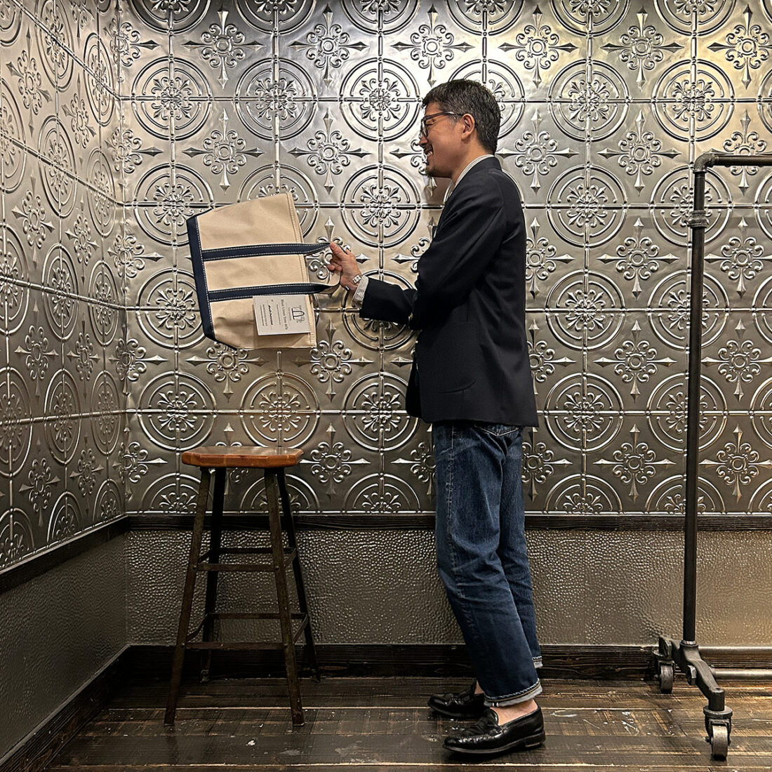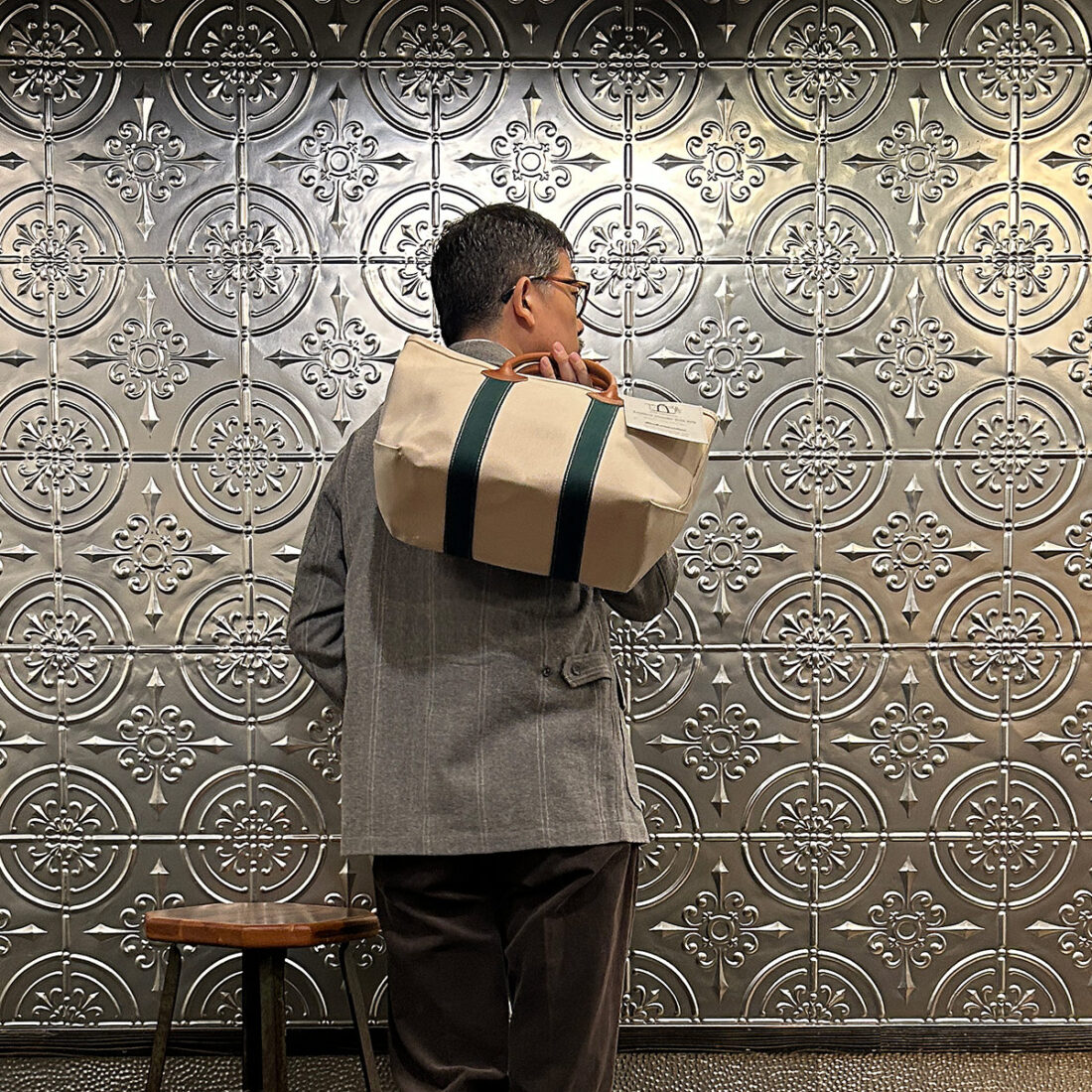 イベントのメインアイテム「Leather Handle Tote 80s レザーハンドルトート80s」を持ってみました。