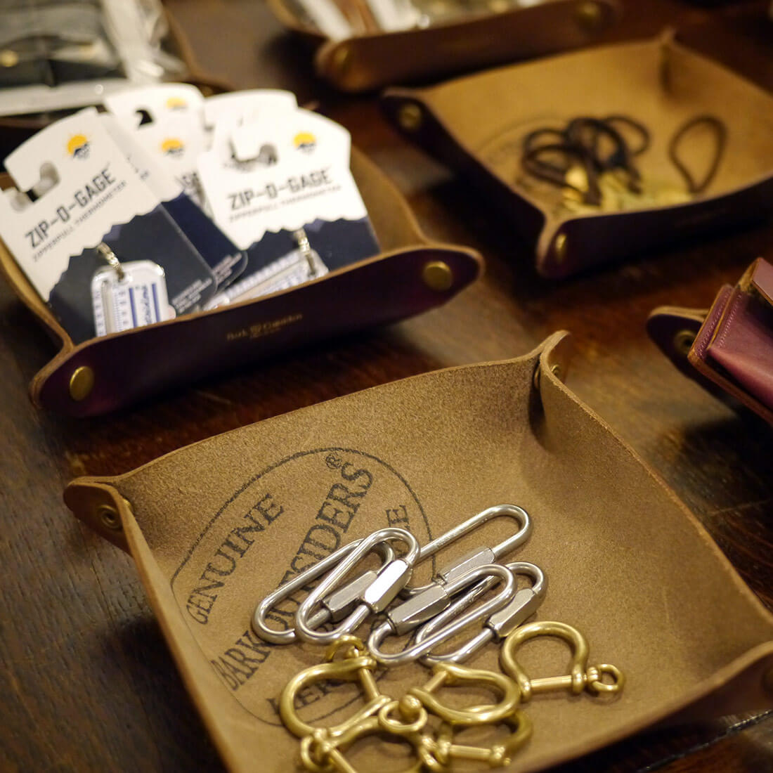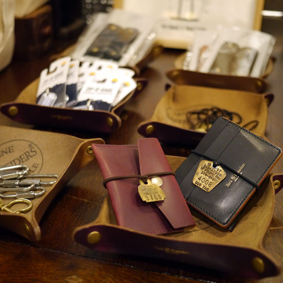 最近発売になったミニマリストシリーズのコインケースやカードケース。ヴィンテージのドッグタグを使った実際の利用シーンのご提案も。