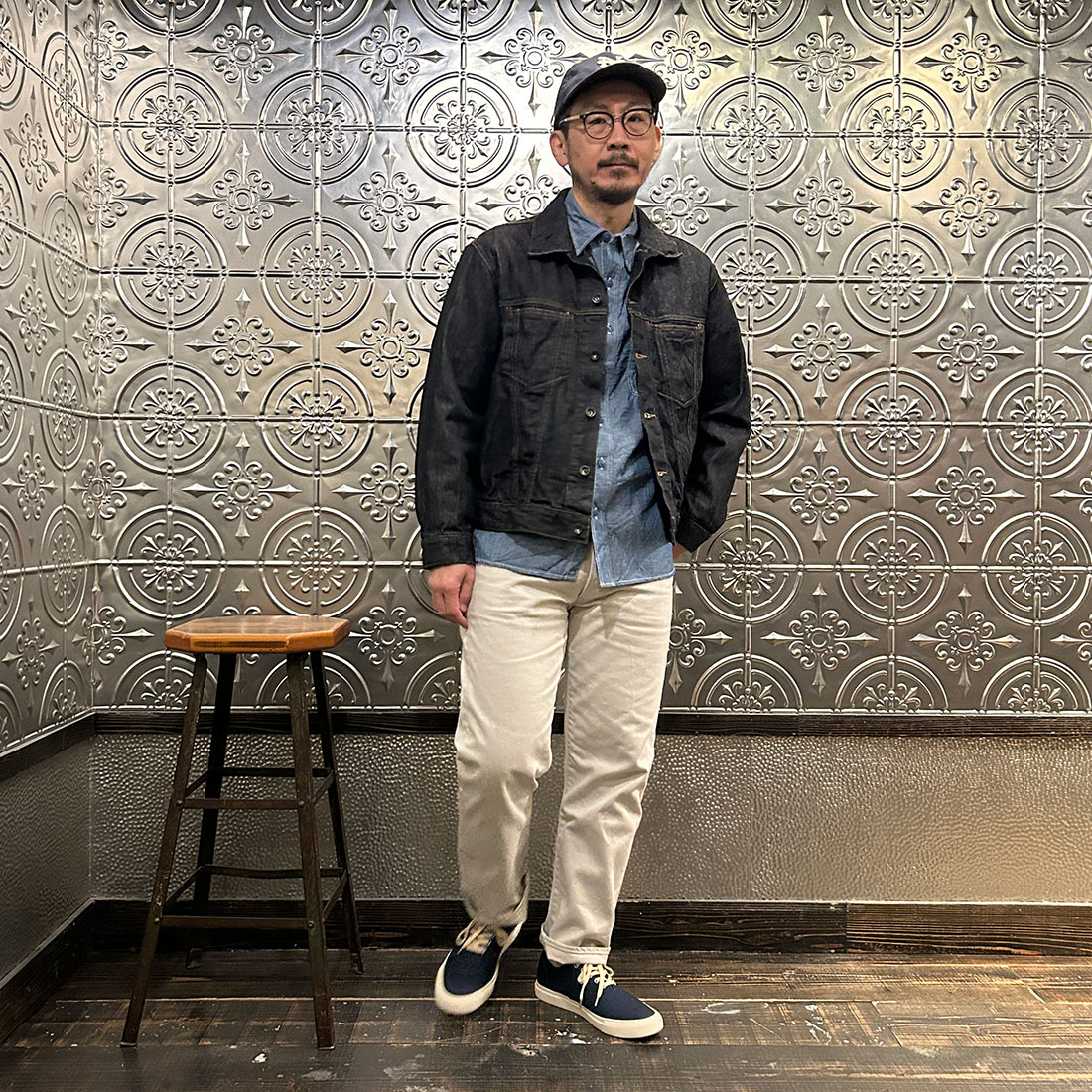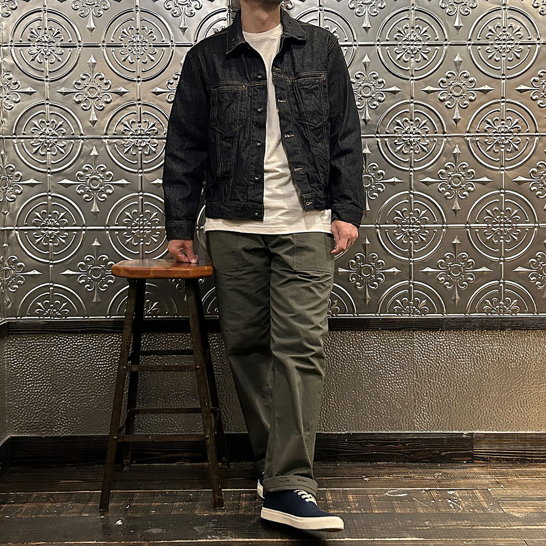 先行で入荷していたファティーグパンツと同素材となるデニムジャケット。