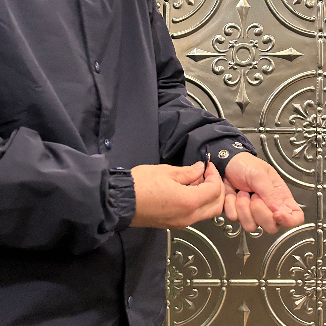 袖口には2つのスナップボタンがつけられており袖口のサイズ調節が可能になっています。