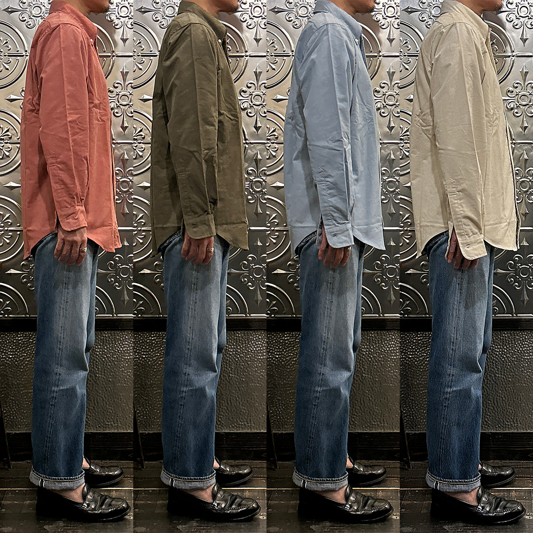 店頭にはオックスフォード生地の洗い後サンプルがほぼフルサイズ揃っておりますので是非ご試着を。