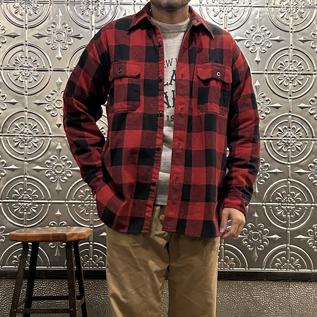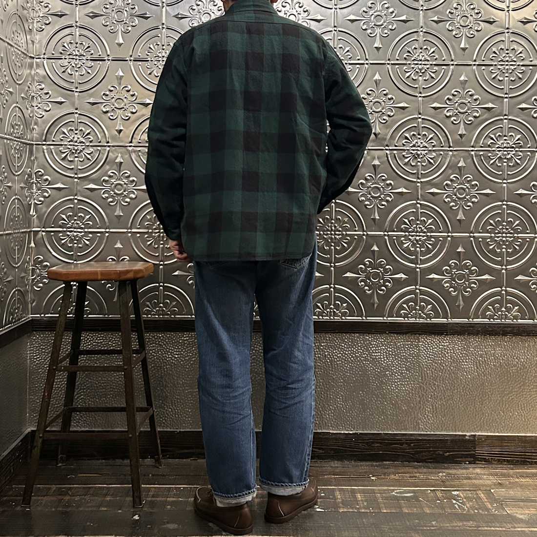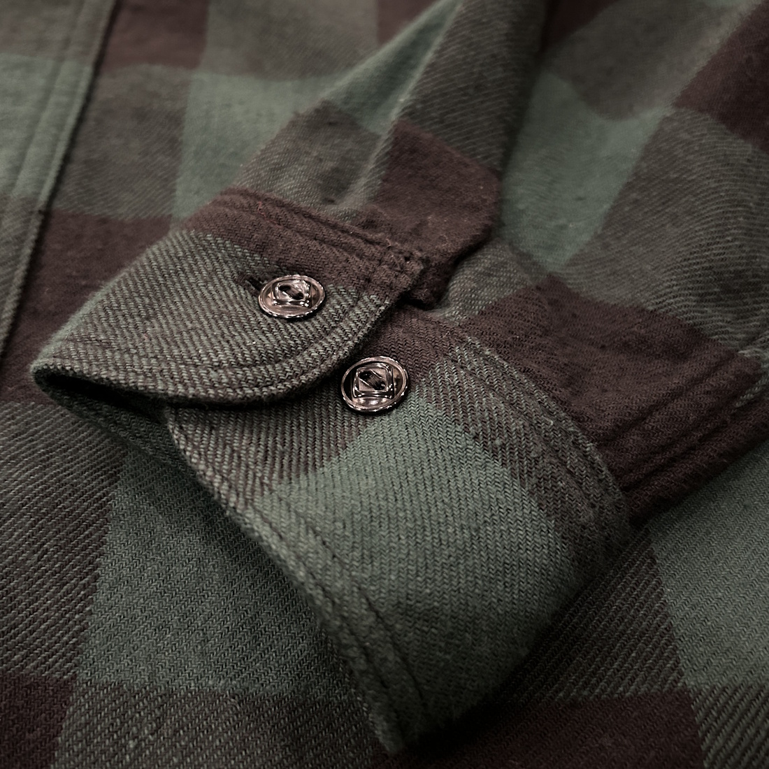 起毛かかっていないやや厚みのある7.5オンスのバッファローチェック柄のコットンフランネル生地を採用。