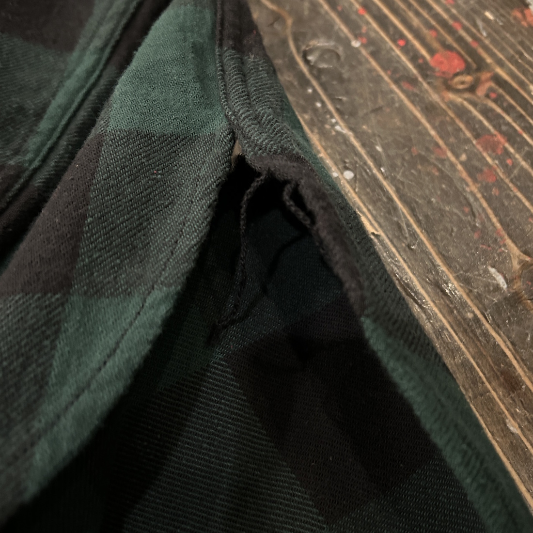 7.5オンスほどのコットンフランネル生地、生地の風合い、厚みが出すぎる部分を薄くしたり、