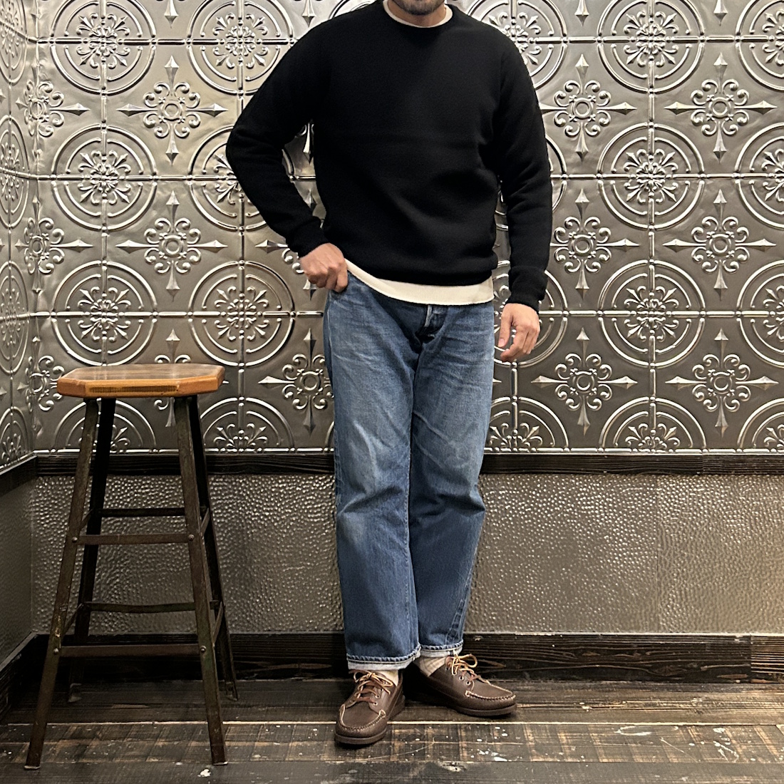 だけど、堅苦しさのないスウェット感覚で着て頂けるタフで丈夫な良い意味でニットらしい品のある1着。