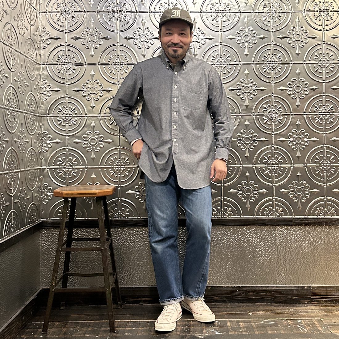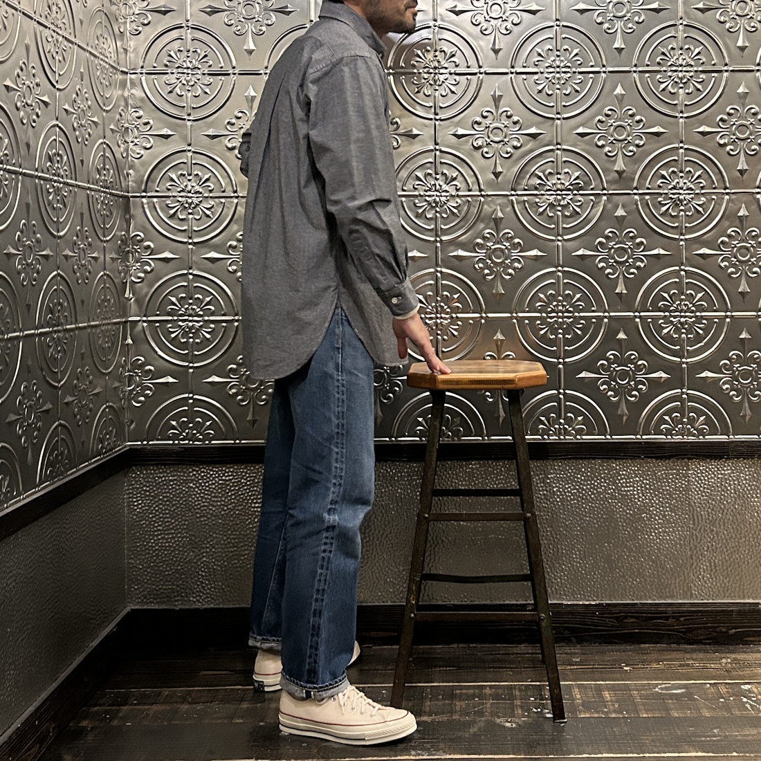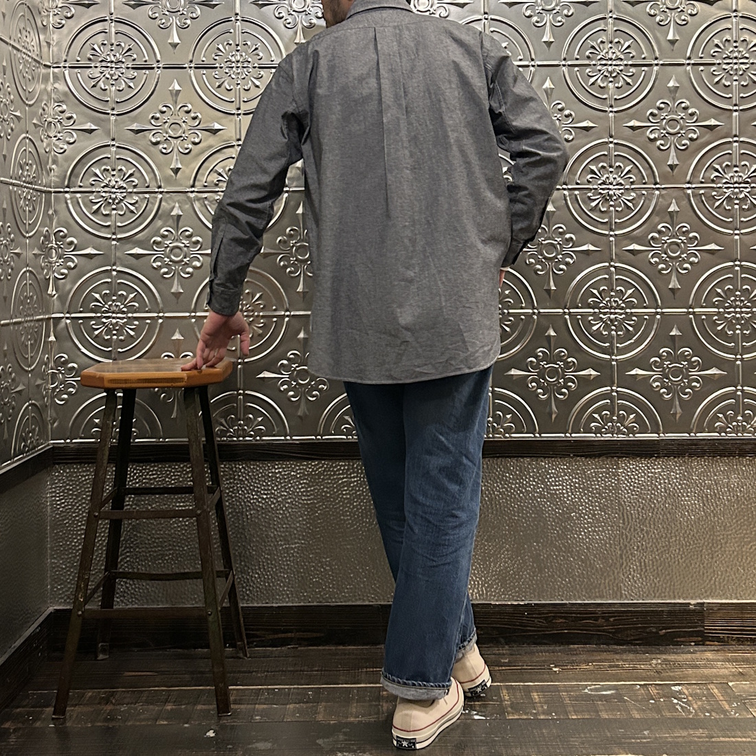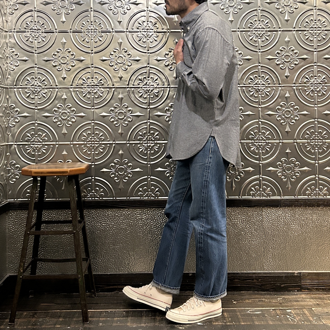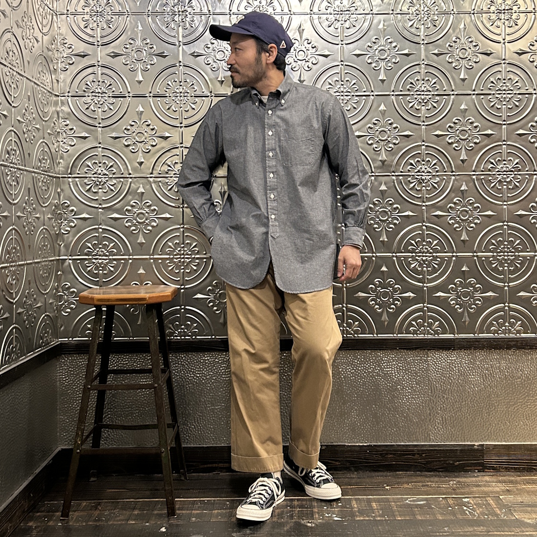 それこそブルーのシャンブレーシャツですとデニムの色落ち状態によっては合わせにくかったりします。