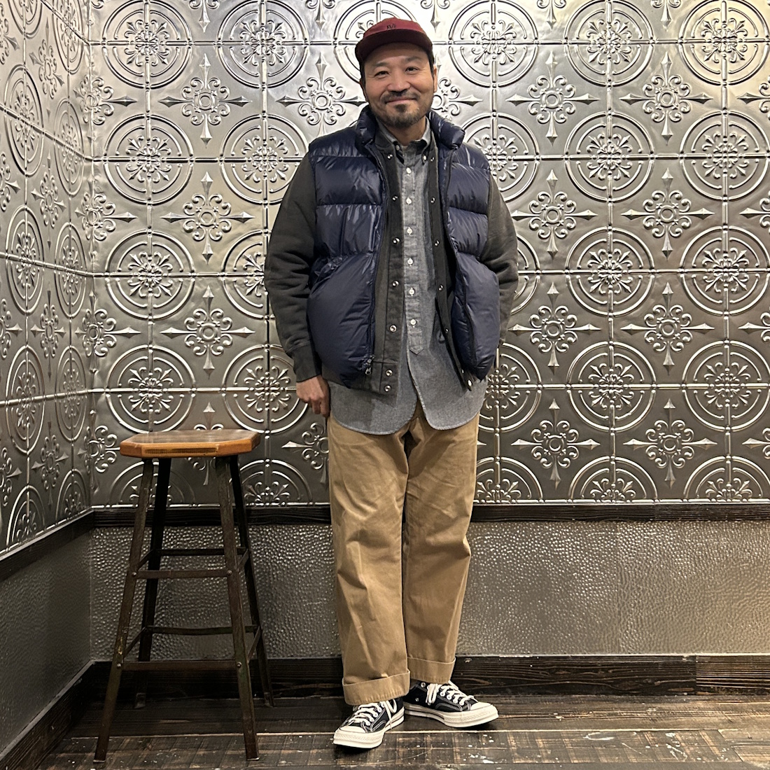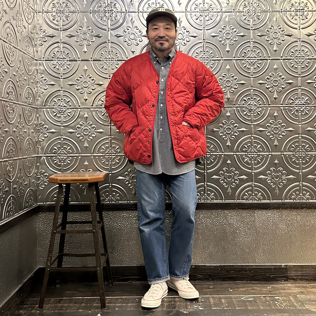 パンツは太め。アウターはゆったりとした着用感がお好みという方でしたら尚更サイズアップの選択がオススメ。