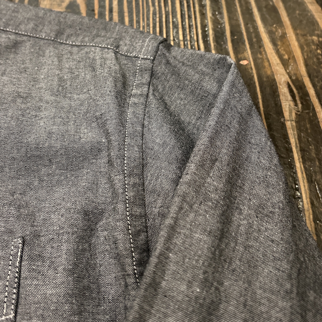 真夏以外のシーズンであれば着用可能な使い勝手の良いシャンブレー生地を採用。