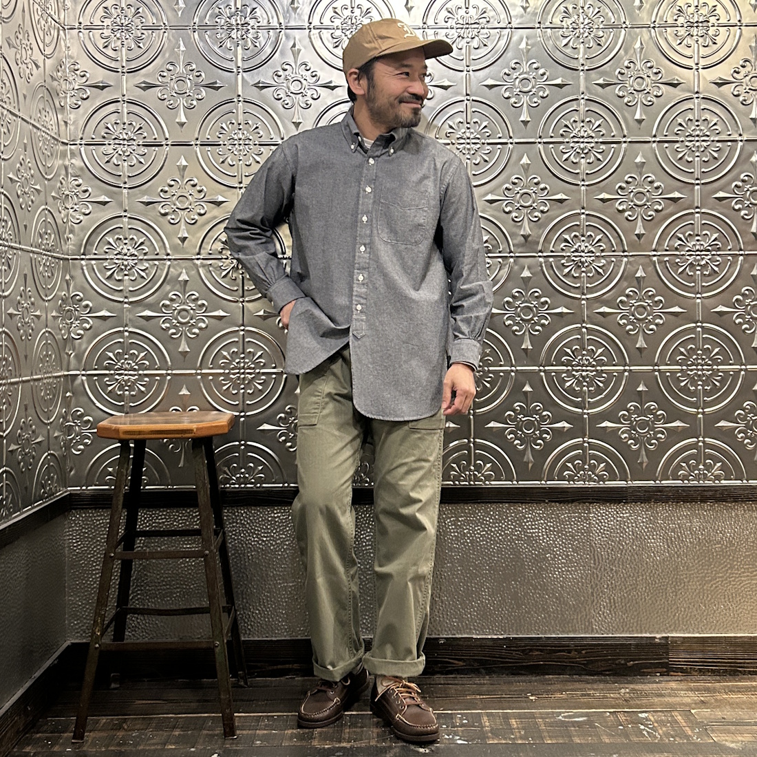 やっぱりカジュアルに着こなすなら、ファティーグパンツ、チノパン、デニム合わせははずせませんね。