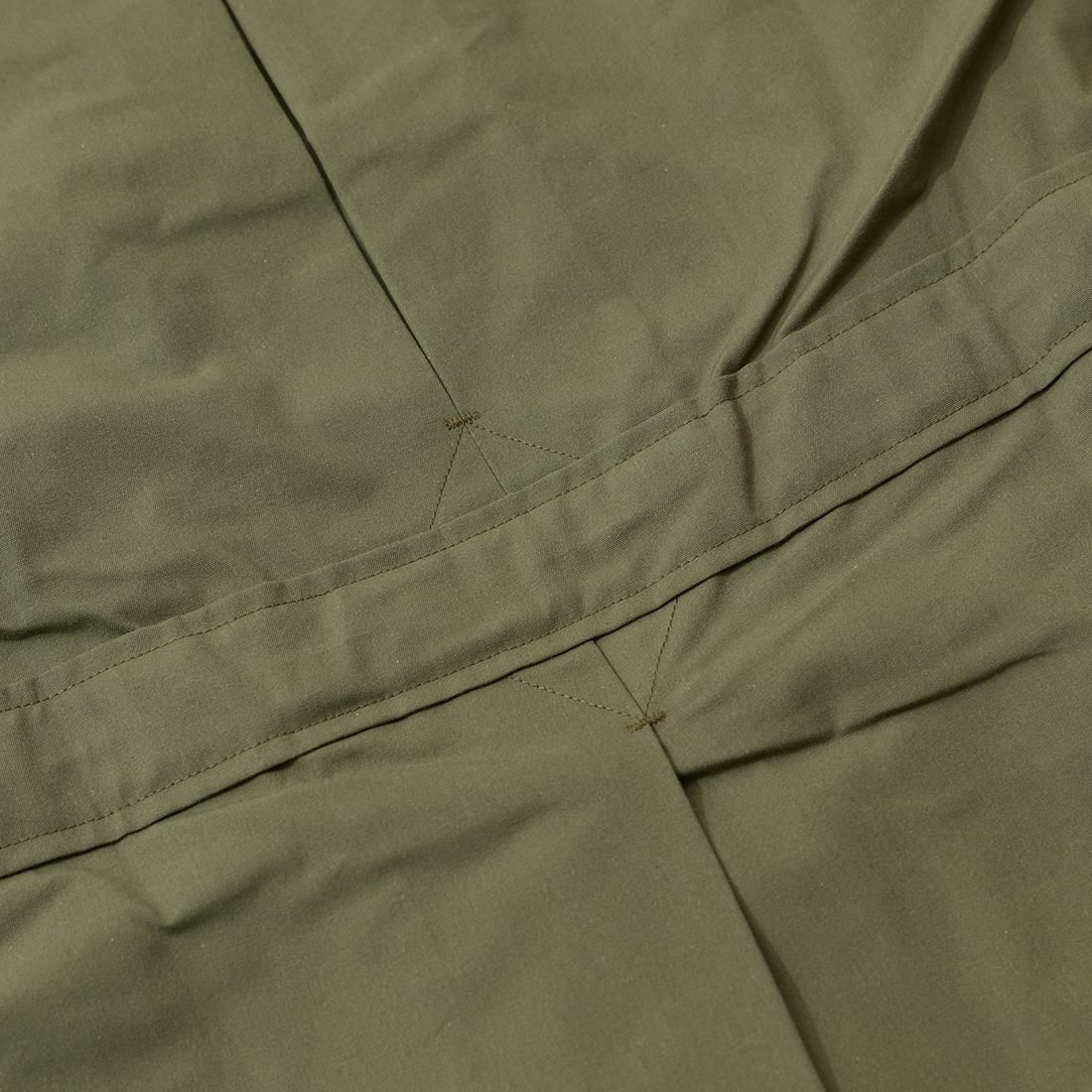 ヴィンテージピースにはこのプリーツ付け根部分に着用による生地ダメージ(裂けたような跡)があるものが見受けられます。この事象を防ぐためにカンヌキによる補強を施しアップデート。