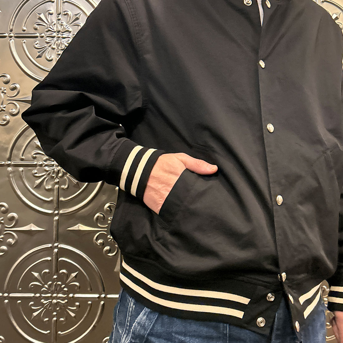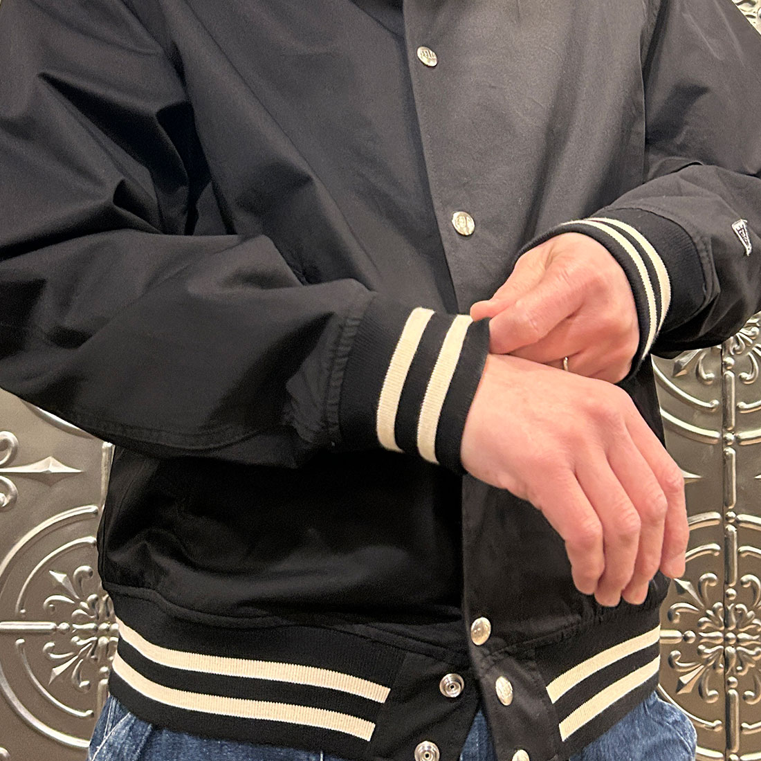 POPLIN AWARD JACKET – BLACK/BLACK&NATURAL STRIPE