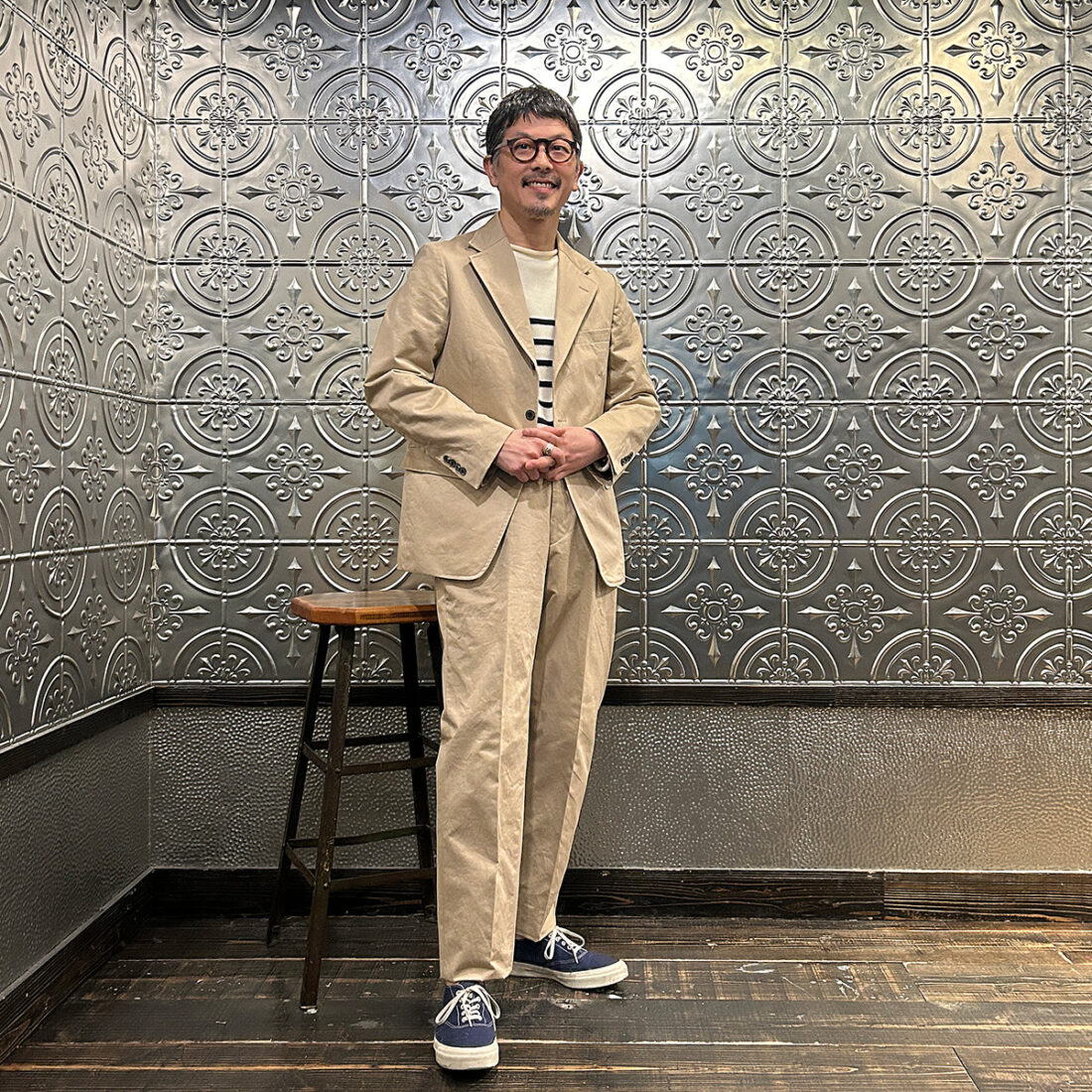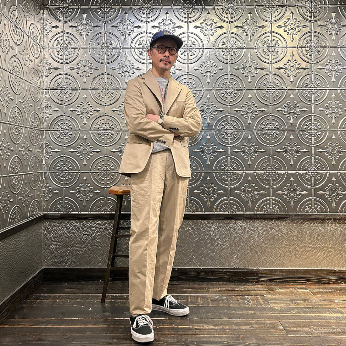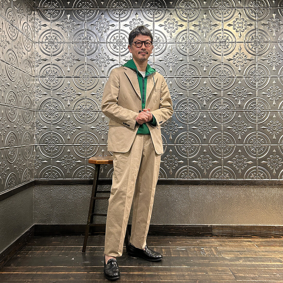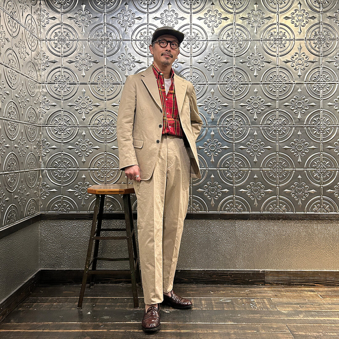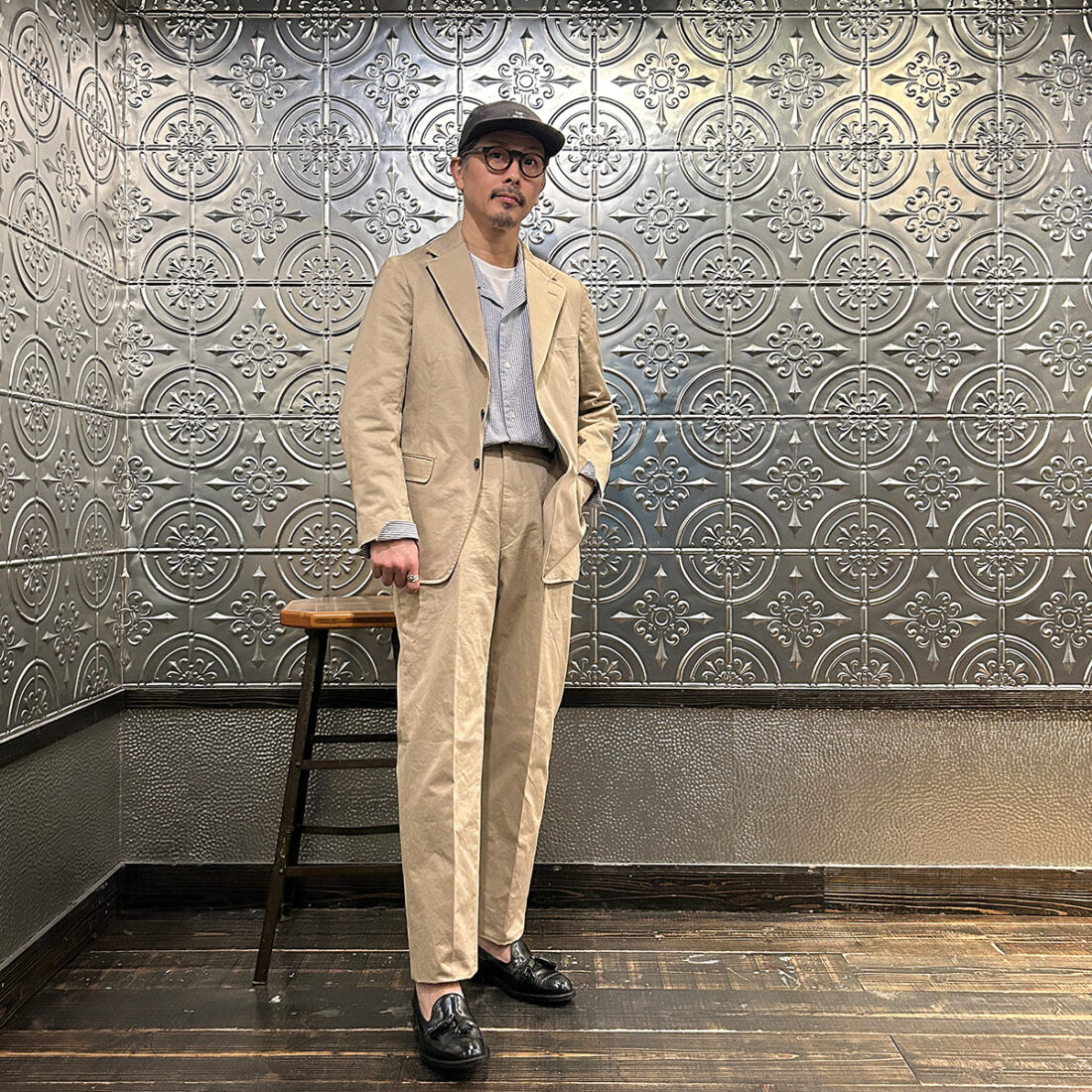 普段はスーツとは無縁に近いライフスタイルの私が「ザ・カーキ」をどう着るか、どのようなスタイリングをお客様にご提案するか。