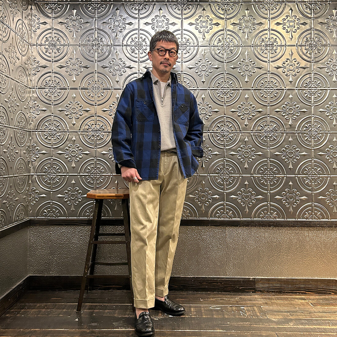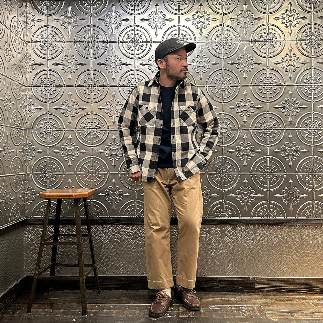 コットンのヘビーウェイトのバッファローチェック。ベタと言えばベタなんですがそれが凄く良いのです。この手のシャツはゴリゴリのアメカジ系ブランドが作っているイメージ。それよりもう少し洗練された印象。サイズ感とシルエットのアレンジが林さんの監修だなって印象です。いい意味で今っぽくなり過ぎてない感じ。かといって昔のままの四角いつくりでもなく。バランスの良いワークシャツって感じ。