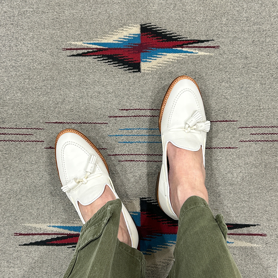 こんな白のタッセルを軍パンに合わせて「粋」に履いて欲しいですね~。