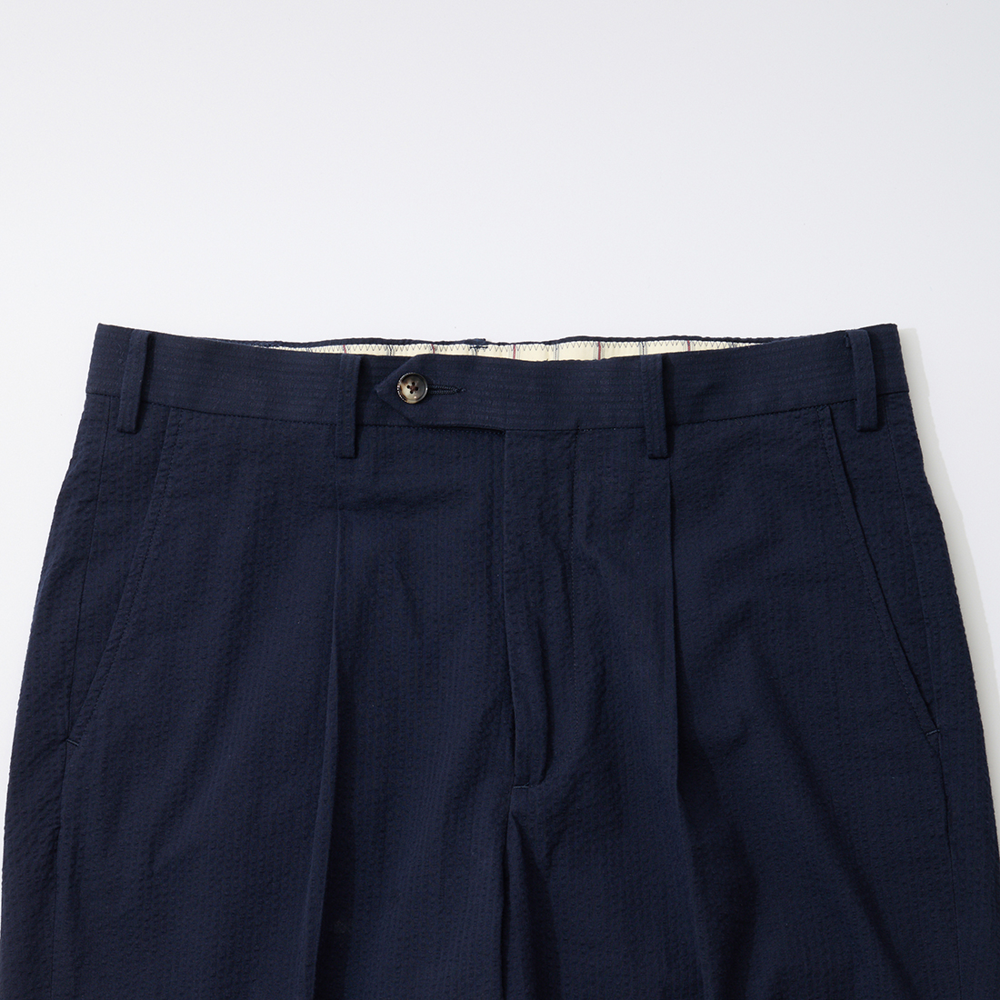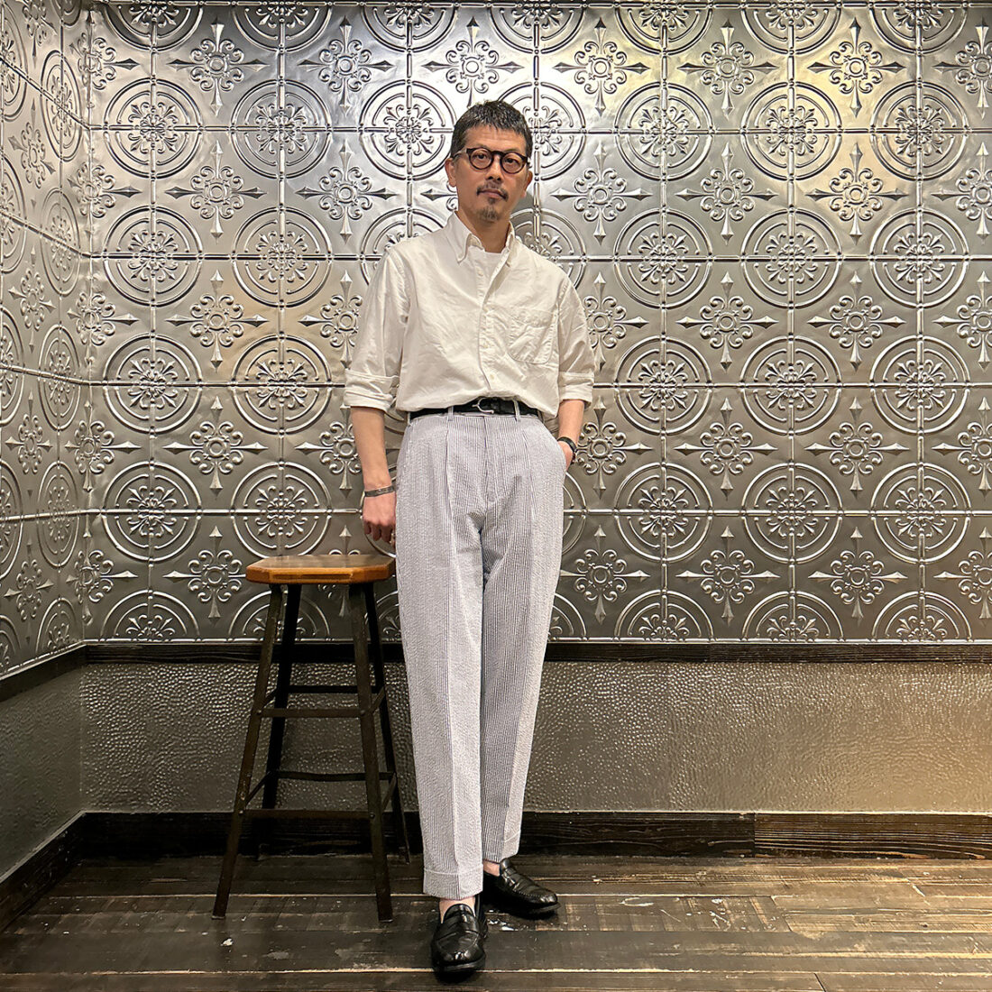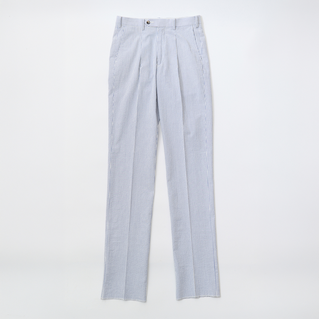 昨年お仕事用にトロピカルウールを購入して頂いた方も休日用に気負わずラフに穿けるシアサッカーも如何ですか?