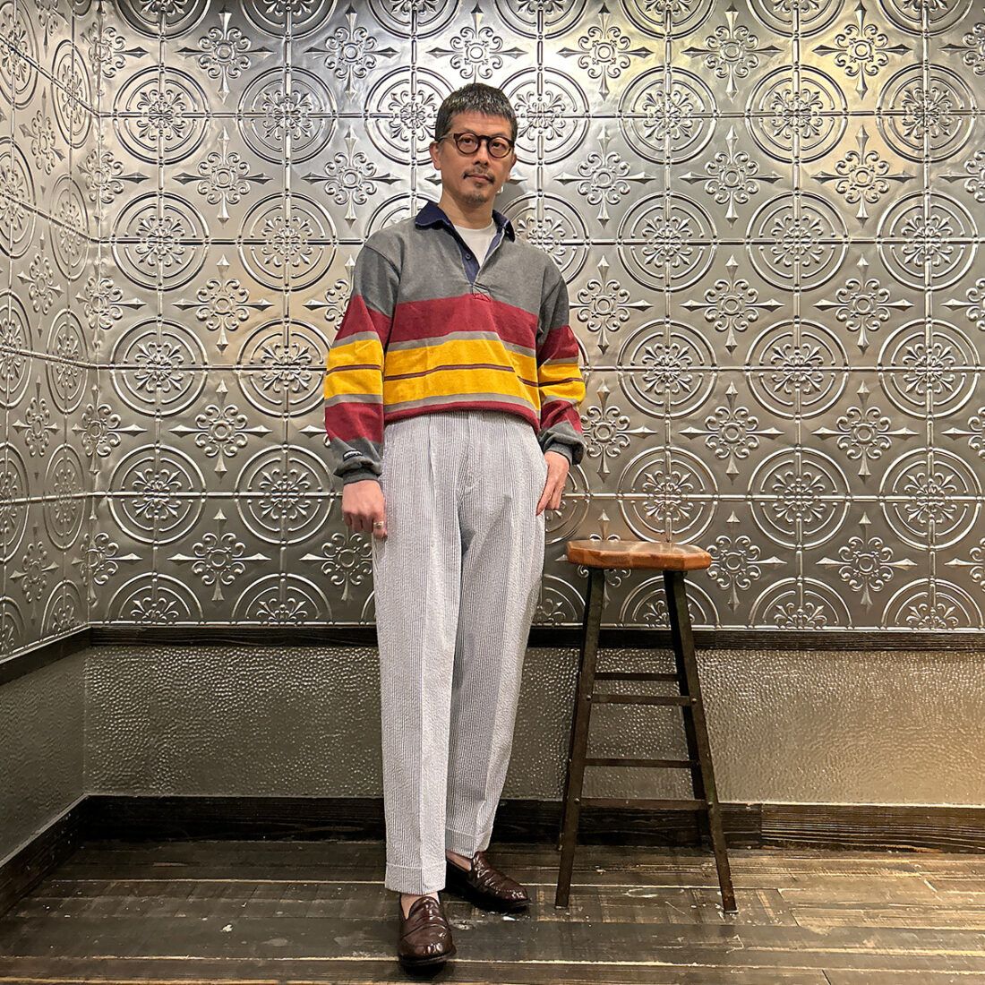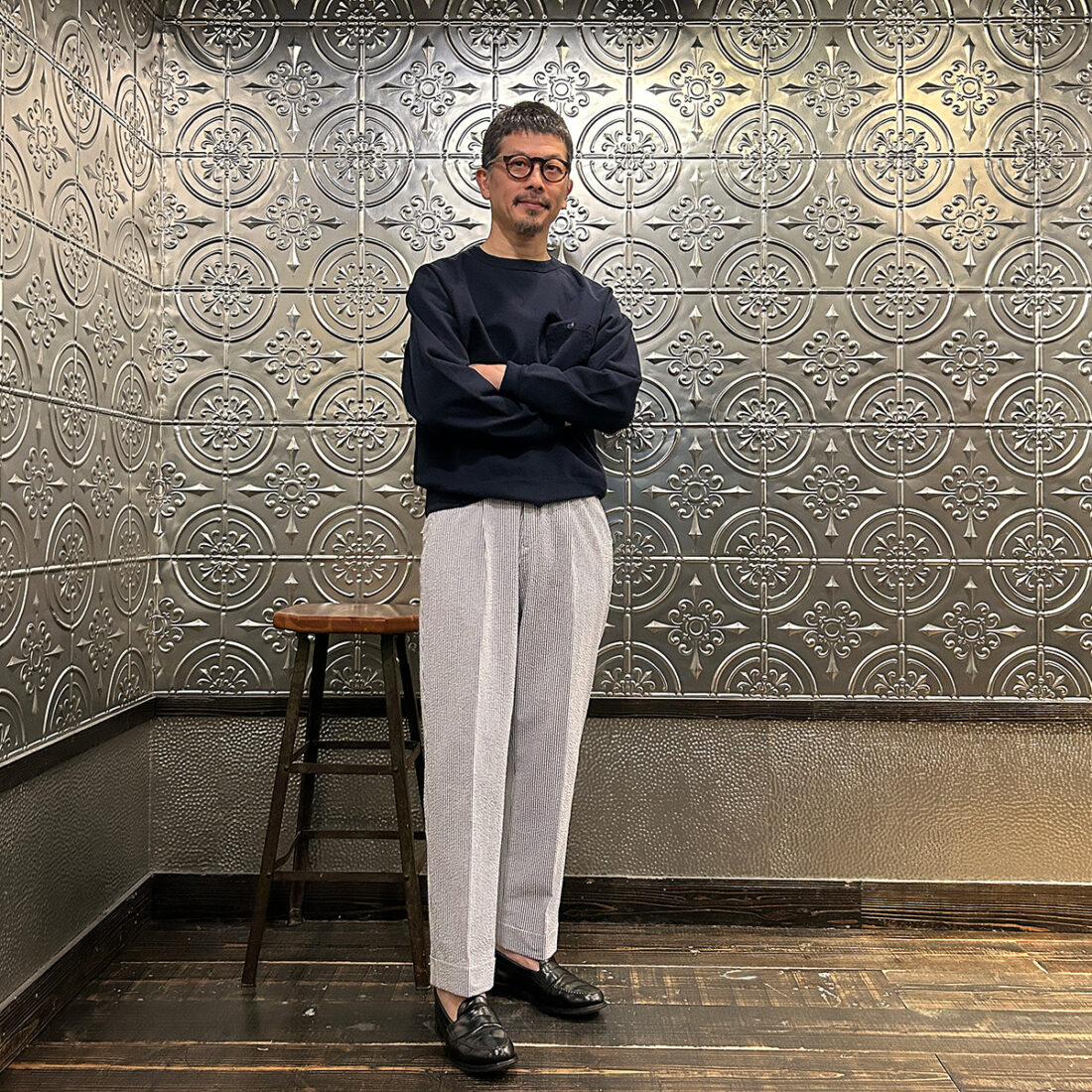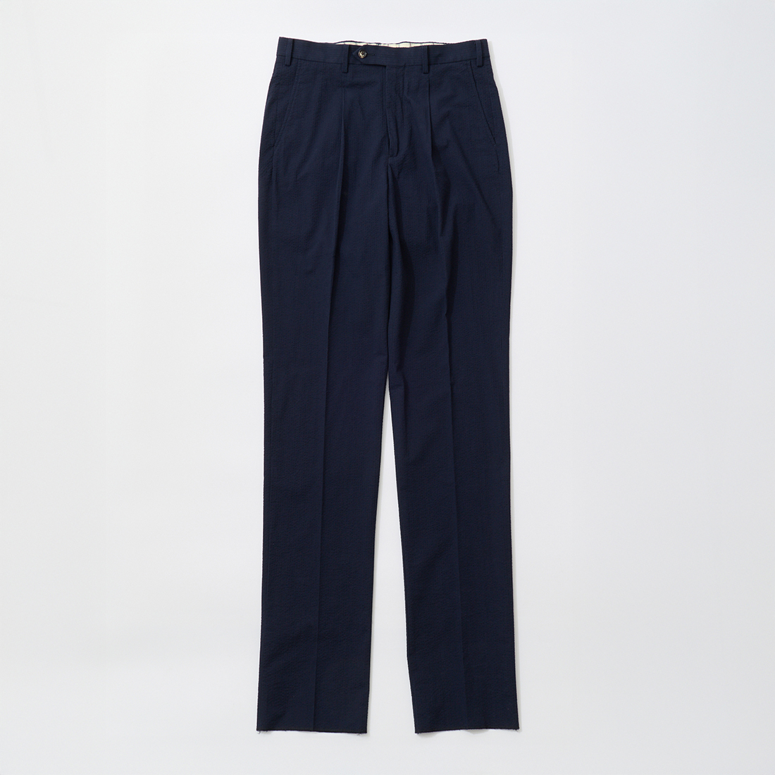 昨年お仕事用にトロピカルウールを購入して頂いた方も休日用に気負わずラフに穿けるシアサッカーも如何ですか?