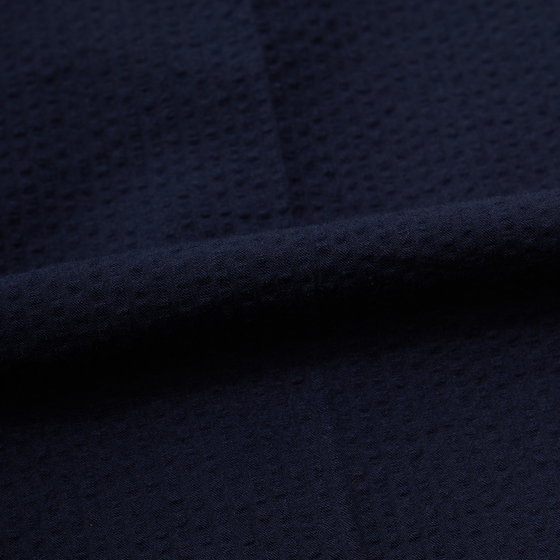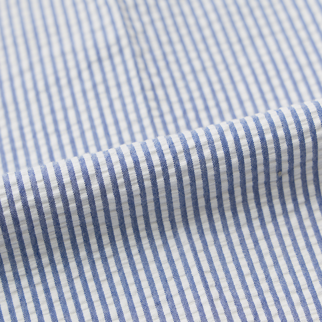 シアサッカーは生地に凹凸があり肌への接地面積が小さい為、ベタつかず通気性にも優れたコットン100%の天然の機能素材。