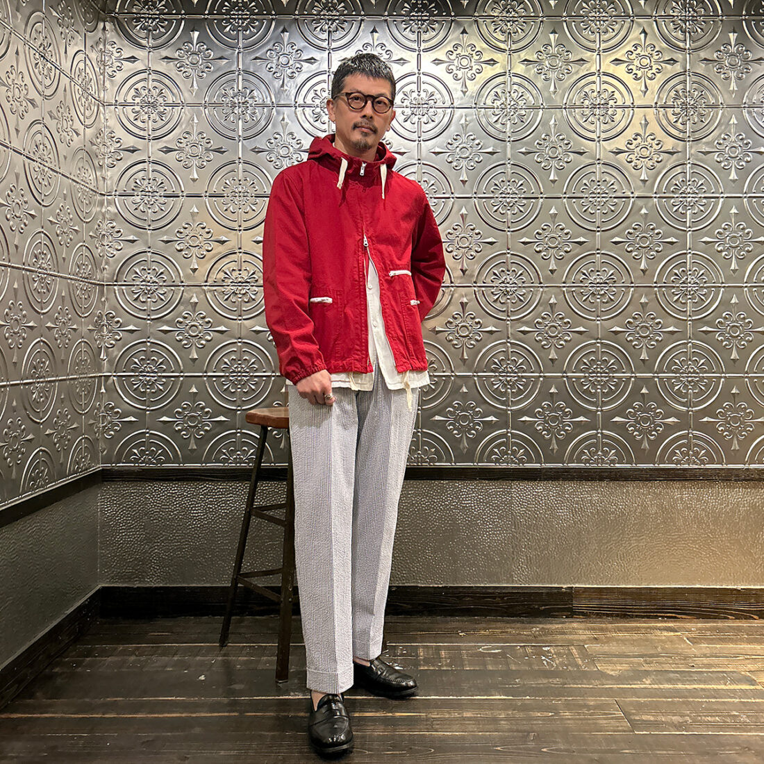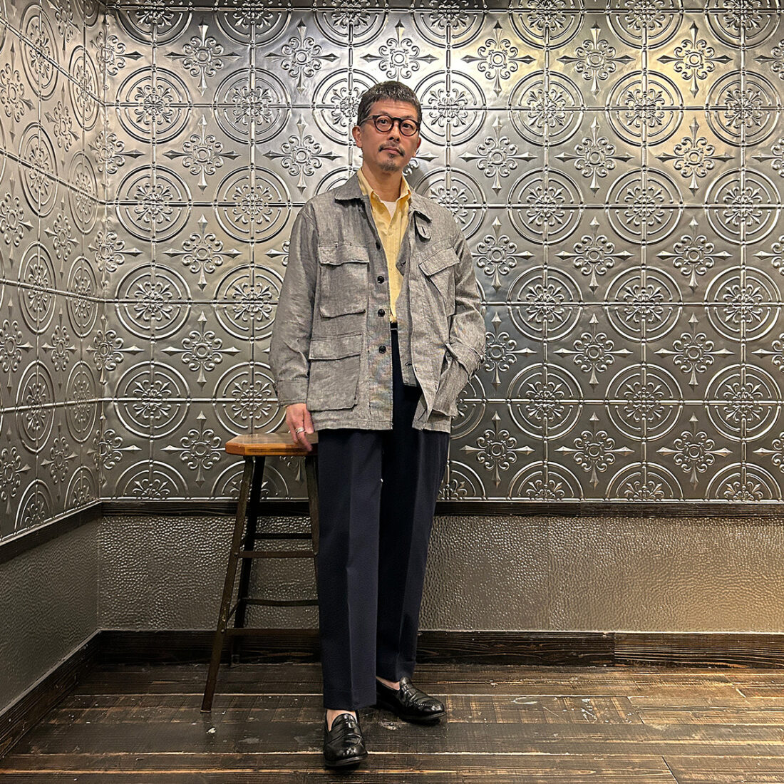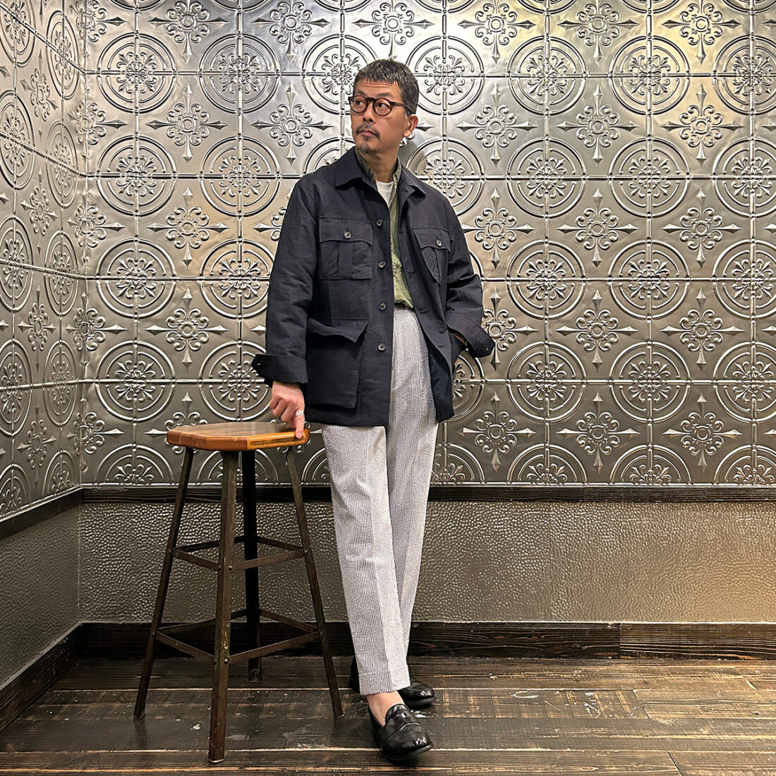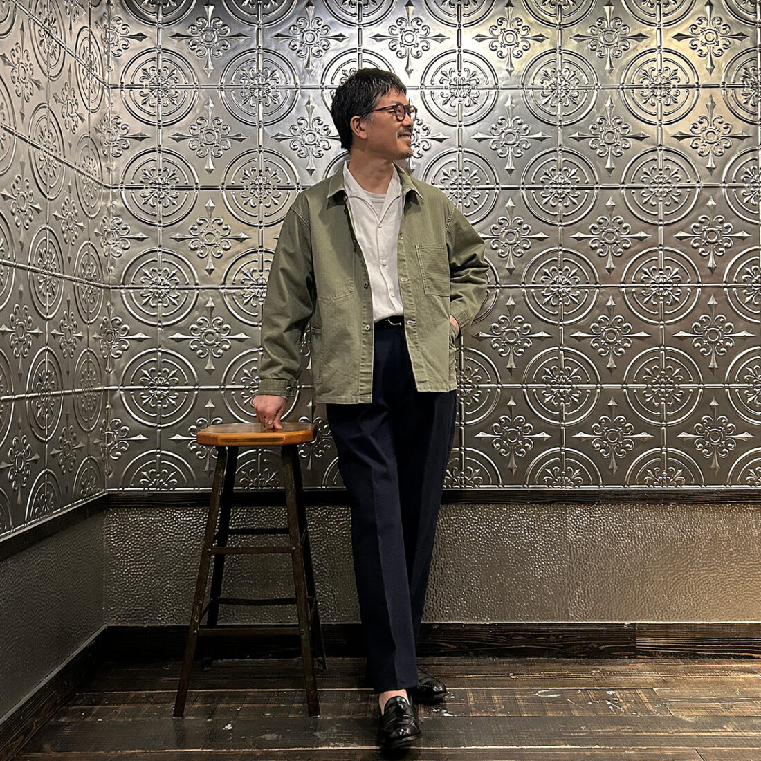 パンツが春夏向けの軽めの生地なので、あまりヘビー過ぎるアウターを合わせるとそのボリュームに耐え切れません。そこだけお気を付けください。