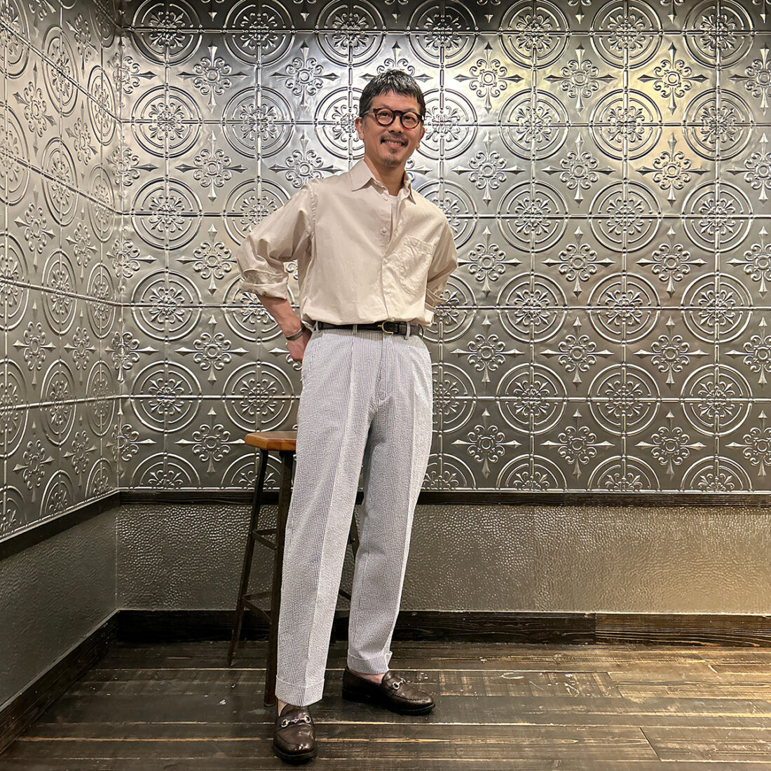 シアサッカーって穿き慣れていない方も多いかもしれませんが、夏でも穿き易い天然素材として凄くオススメ!