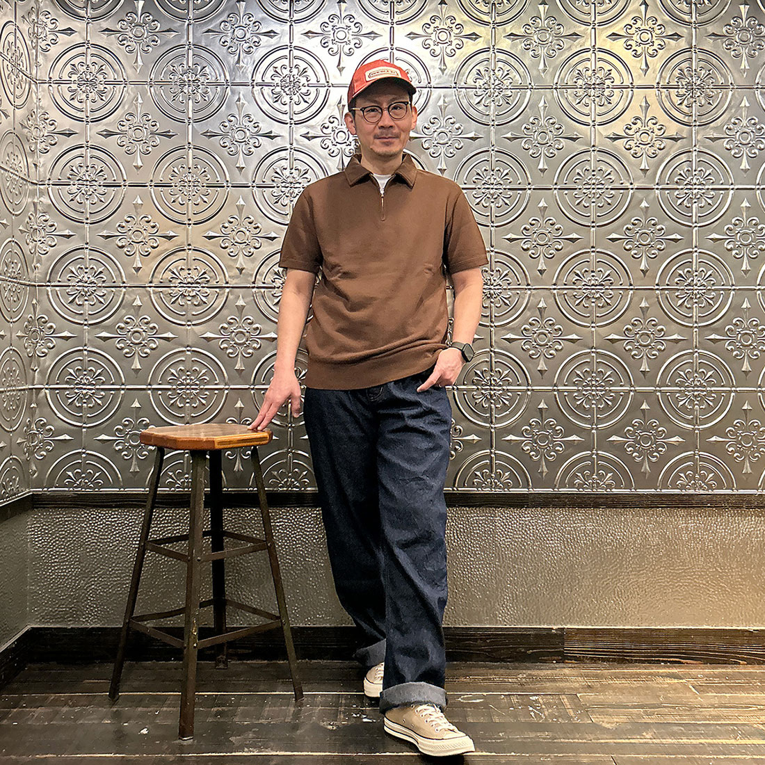 まだ、肌寒さの残る今の時期はエンパイア アンド サンズのハーフジップシャツ。