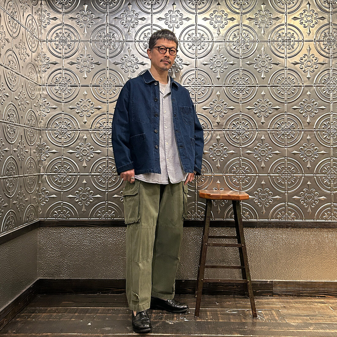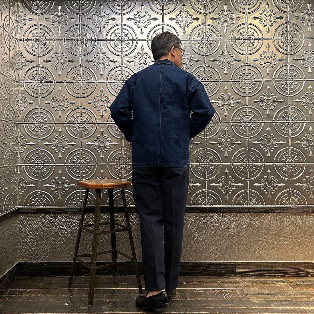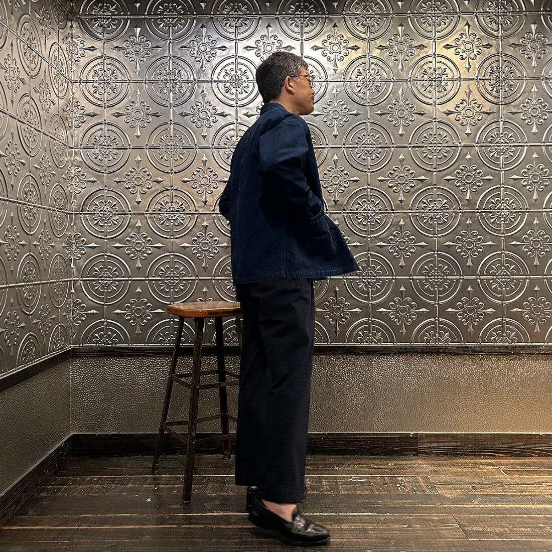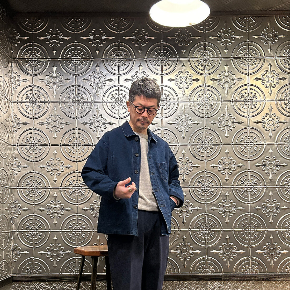 フレンチのワークジャケット、フレンチチャイナジャケットのディテールをミックスした一枚。