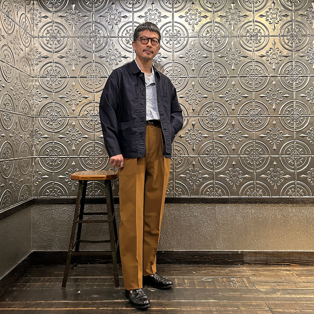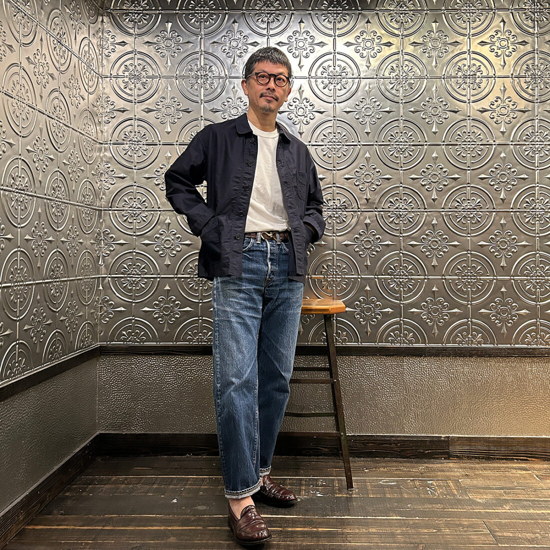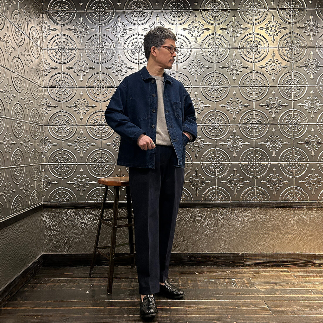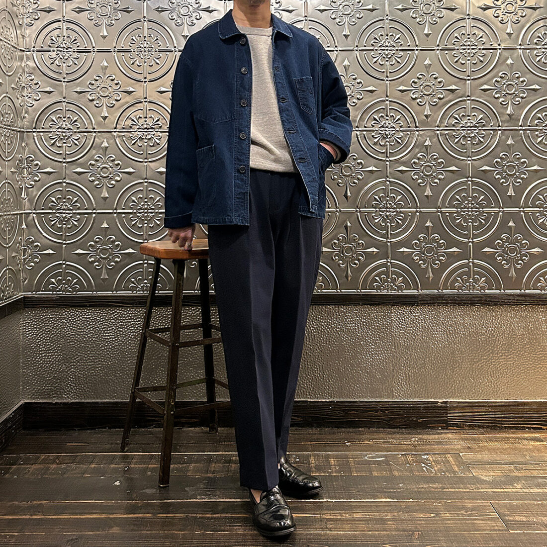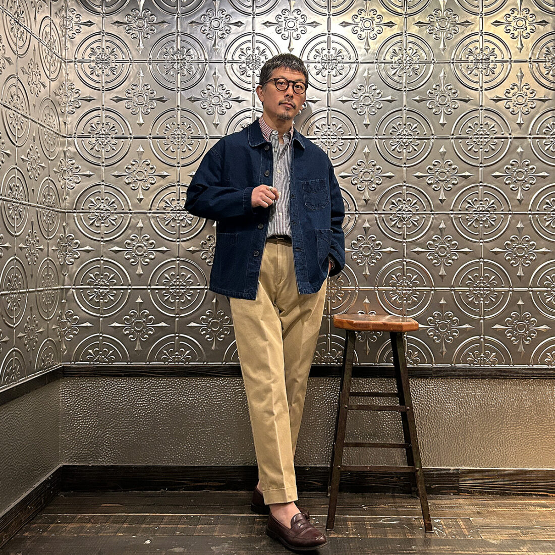 フレンチのワークジャケット、フレンチチャイナジャケットのディテールをミックスした一枚。