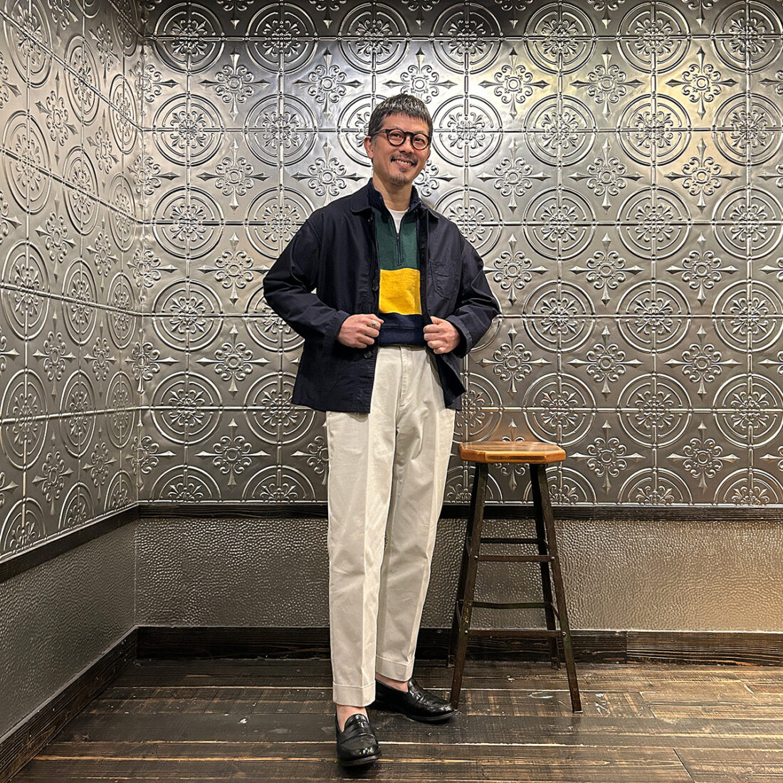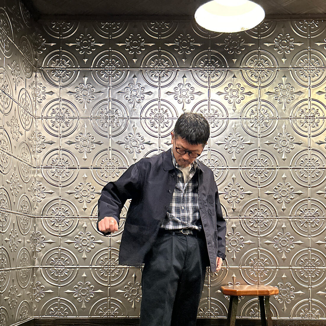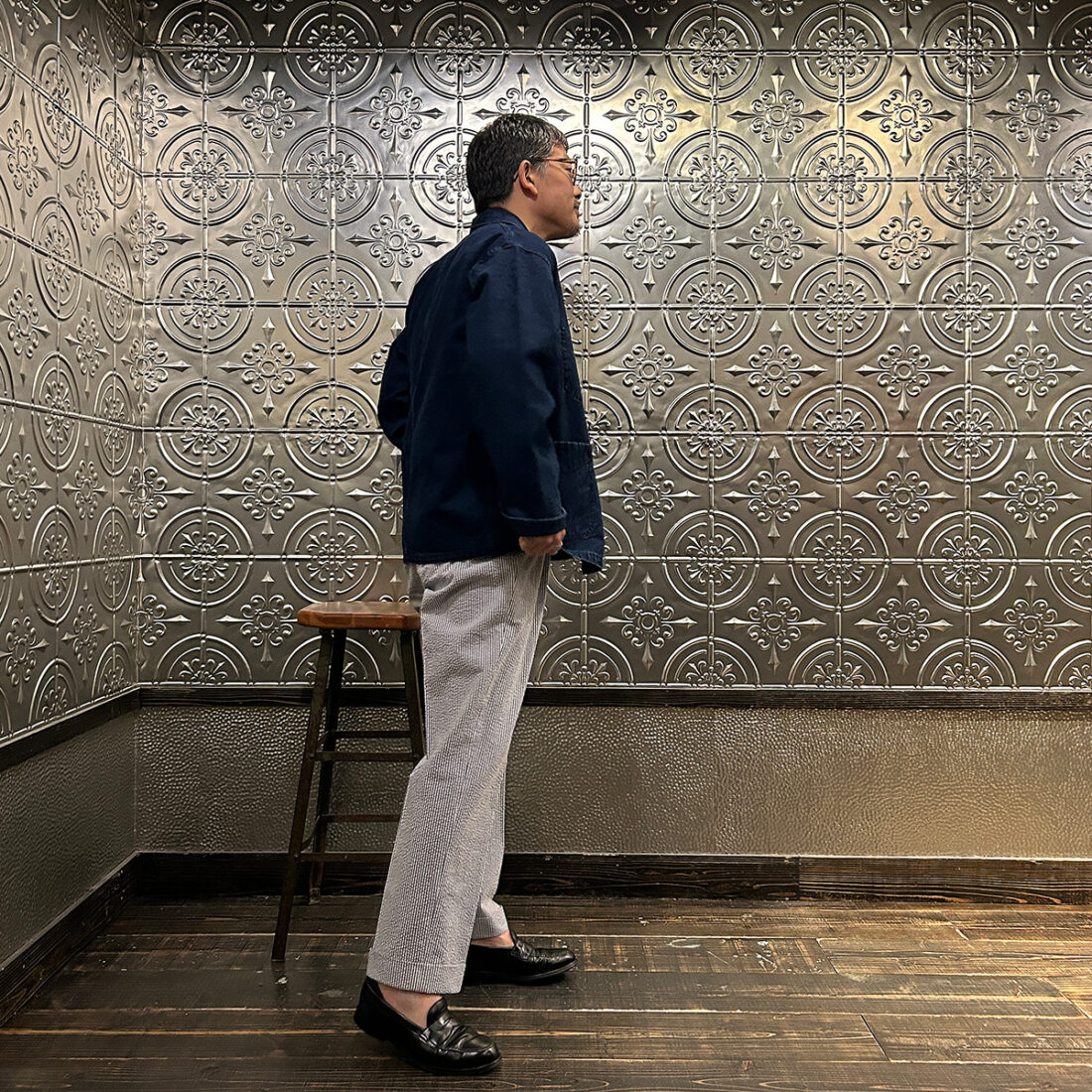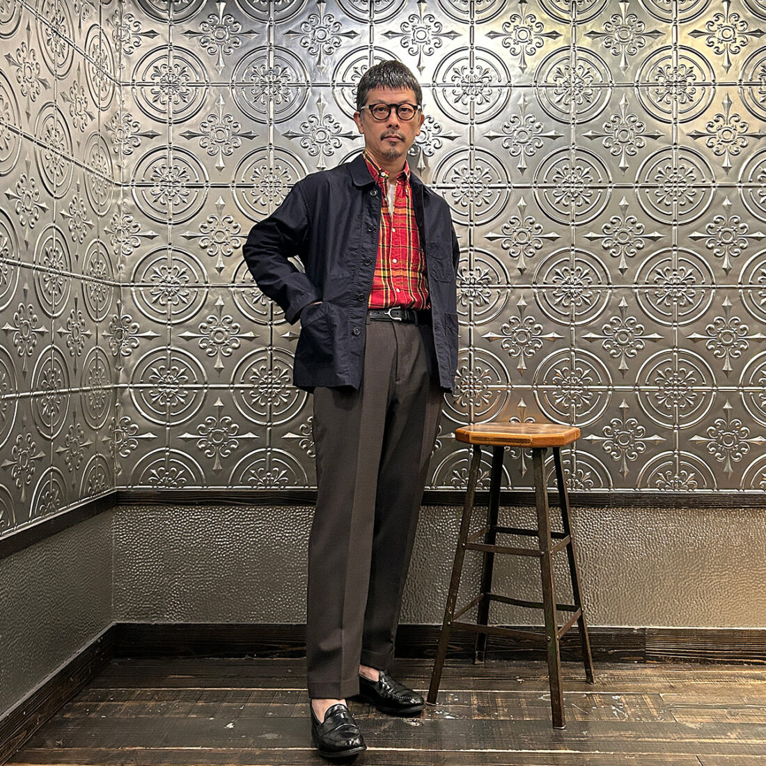 フレンチのワークジャケット、フレンチチャイナジャケットのディテールをミックスした一枚。