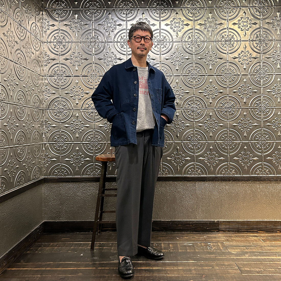 パンツは細めから少しゆとりのあるシルエットでもバランスが非常に良い。何にでも合わせやすくて雰囲気も良いって最高だよなって印象。