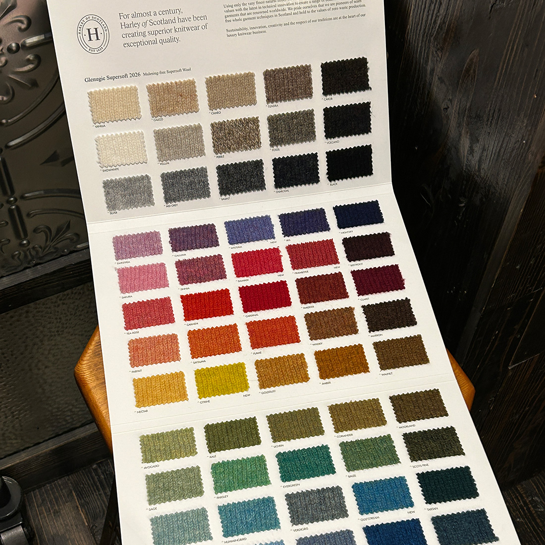 ウィリアムロッキーは2型、ハーレーオブスコットランドは3型からお好きな色・サイズをお選び頂けます。