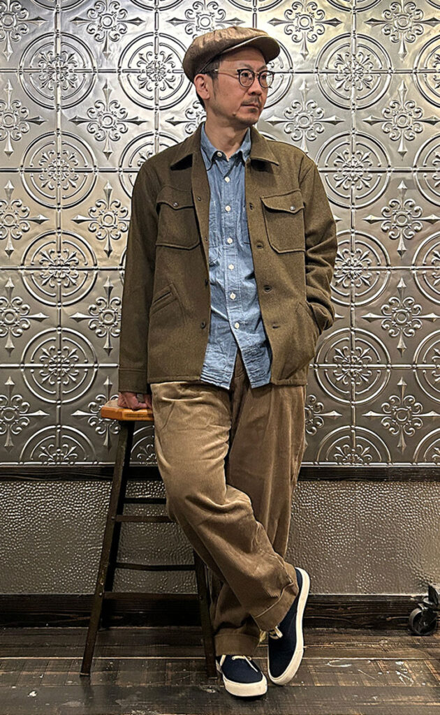 今回のスタイリングではコーデュロイパンツを使用。