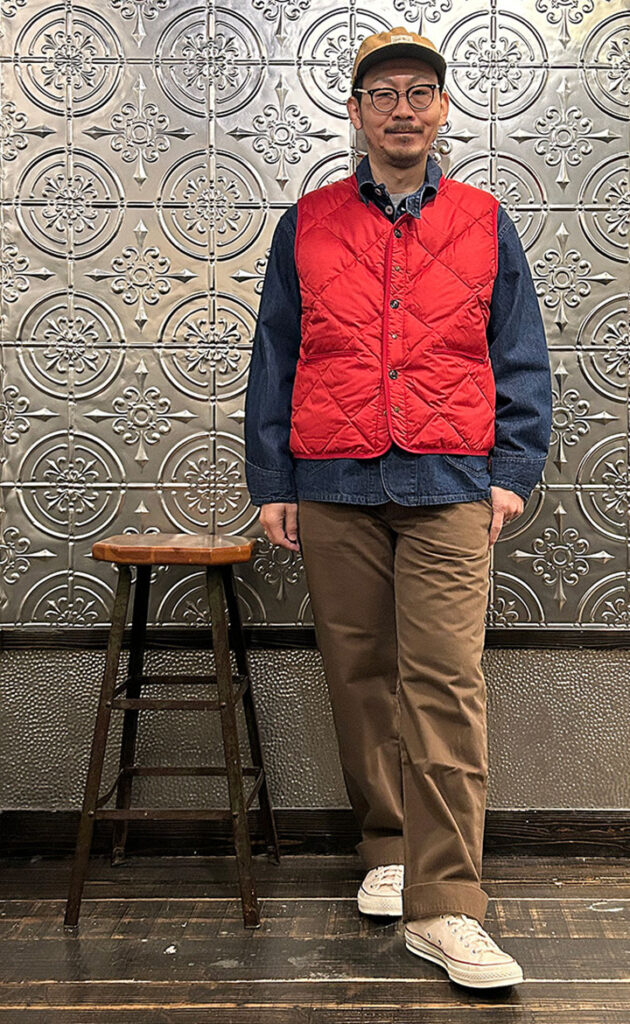 モドメントのダウンベストはインナーとしてもアウターとしても使えるのでスタイリングの幅が広がる1着です。