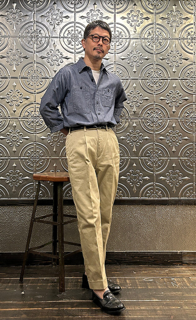 自身が所有するUSのチノをベースに何度も修正を重ねて完成したスラックスベースのチノパン。