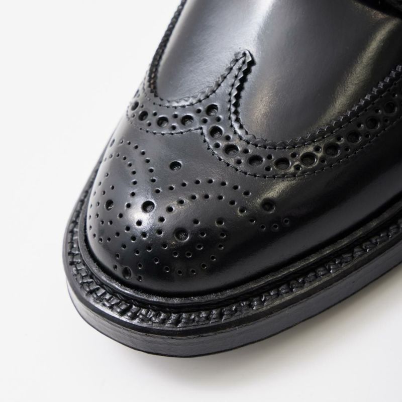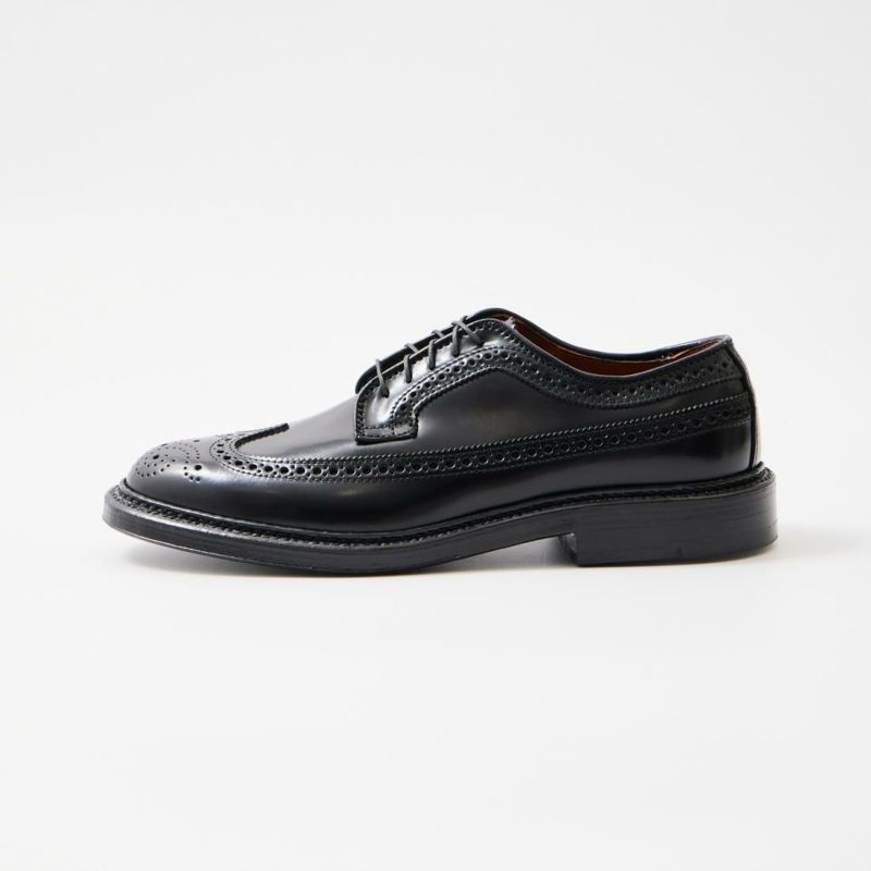 アメリカ発「ALDEN(オールデン)」のWING TIP - CORDOVAN。コードバンレザーを使用したロングウイングチップ「9751」。使用するコードバンは、オールデン社と長年蜜月関係にあるホーウィン社の最高級シェルコードバン。丈夫さと柔軟性に優れ、その独特の皺の入り方により最高の経年変化を見せてくれます。木型は最も癖のないバリーラストを使用。ヒールカップは浅めで、適度に足に付いてくる履きやすい木型です。ダブルレザーソールならではの、足を護ってくれている様な安心感のある履き心地も魅力です。