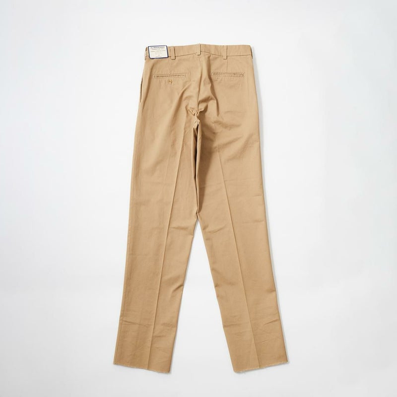 ALL AMERICAN KHAKIS(オールアメリカンカーキズ)のCRAMERTON TWILL RELAXED FIT。第二次大戦中のUSミリタリーチノの生地サプライヤーとして名を馳せた老舗テキスタイルメーカーCRAMERTON社の8.5ozツイルを使用したUS製チノパン。ハリコシのある中厚の8.5ozツイルは経年変化も楽しみな素材。前立てはジップフロント。左右にハンドポケット。バックの左右にも両玉縁ポケットを装備。深めの股上。ゆったりとした腰回りで膝下から緩やかにテーパードした穿き易いリラックスフィット。希少なアメリカ製もポイント。アイビーやトラッドスタイルだけでなく幅広いスタイリングに対応可能な1本。