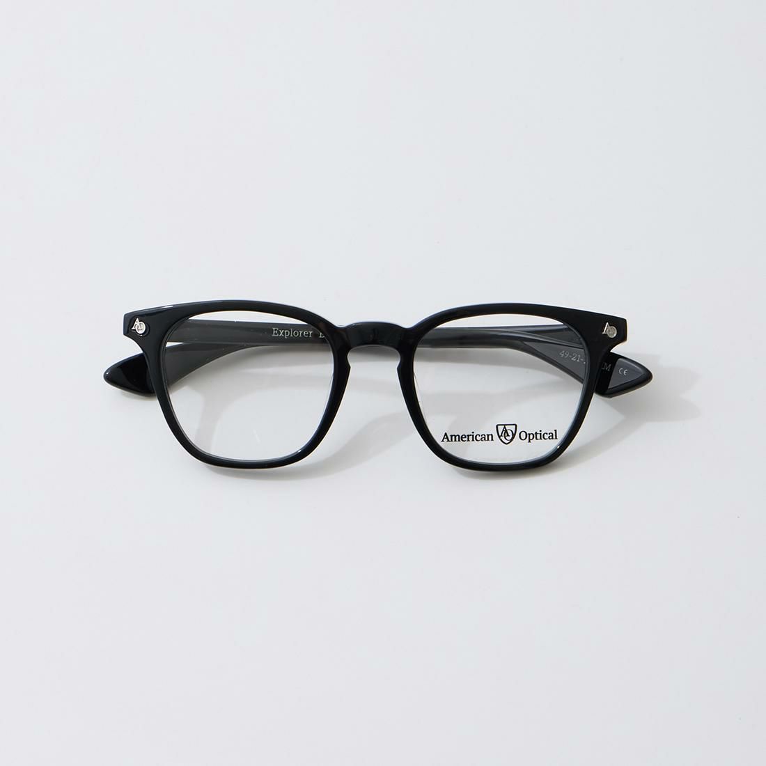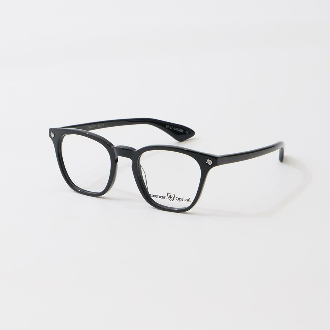 American Optical (アメリカン オプティカル)1960年代のベストセラーデザインを基に復刻したモデル「EXPLORER」。ブランドを代表的するセーフティーグラスがベースでヴィンテージスタイルの愛好家にも人気のデザイン。アメリカ軍に支給されていた眼鏡の元となったモデルとしても知られる名作。フロントヒンジ部分の「AO」の飾り鋲が特徴。