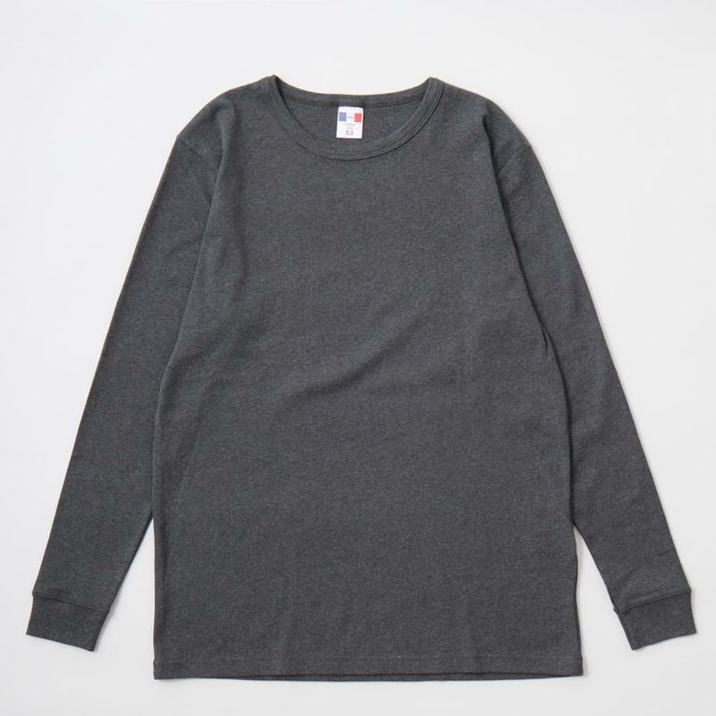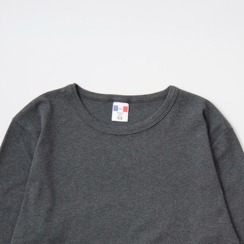 フランス創業のカットソーブランド「BANDOL(バンドール)」の 1×1 RIB COTTON 9/10 SLEEVE MILITARY CREW。 ベーシックなリブ編みの生地を使用した長袖のクルーネックTシャツ。九分袖程度のやや短い袖丈に設定し、袖口はリブになっています。 首元の開きは若干の余裕を持たせてあり、インナーとして着用した時のバランスに配慮しています。 首元のタグにはフランスの象徴でもあるトリコロールカラーのロゴが入ります。