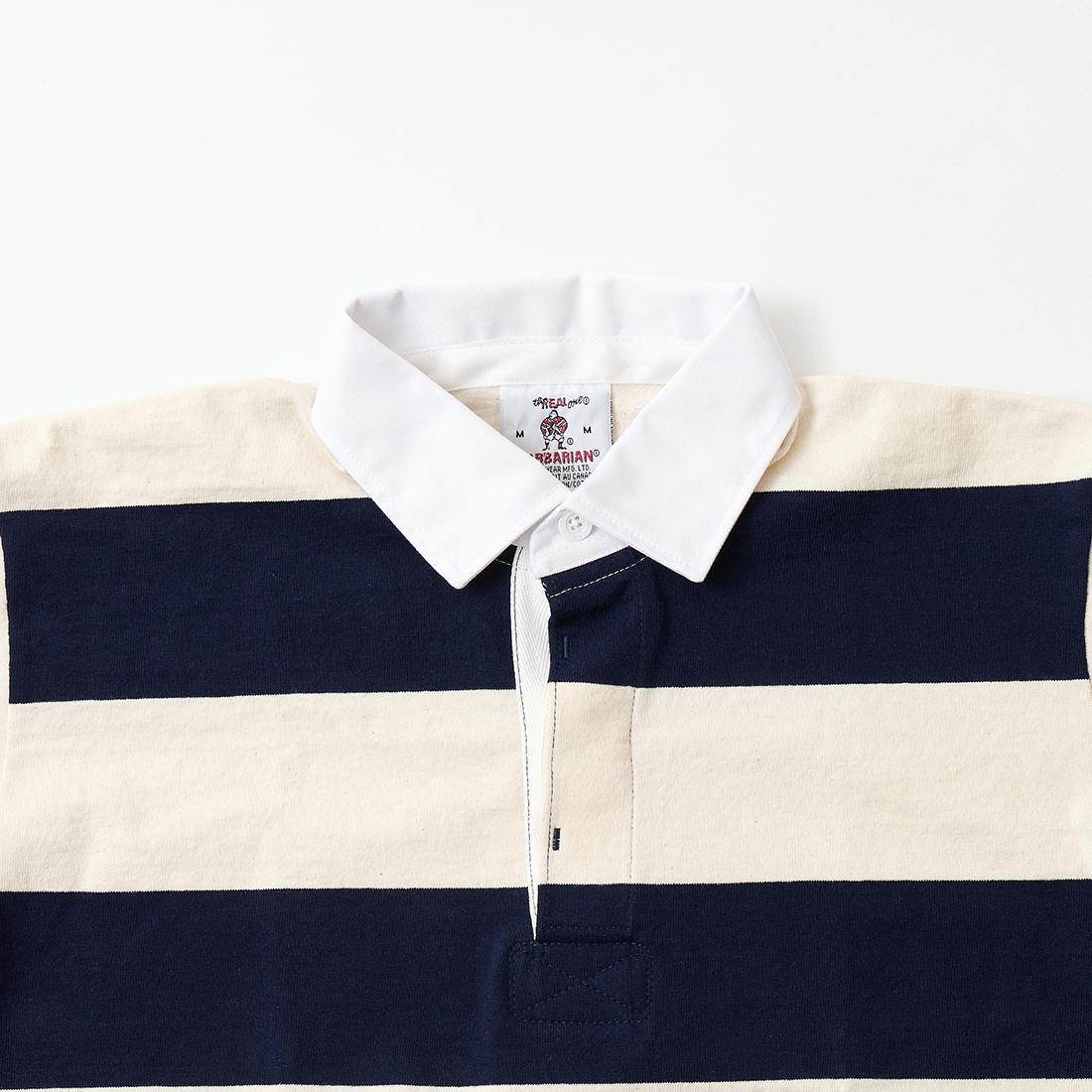 カナダのブリティッシュコロンビア州で1981年に設立されたラグビーシャツメーカーBARBARIAN(バーバリアン)。創始者のビル・ハートル氏は流通しているラグビーシャツに疑問を持ち、一つ一つを分解してデザイン、 カッティング、縫製、付属品、生地の質、強度など、あらゆる角度から研究し最高品質のラクビーシャツを開発。ファッションアイテムとしては勿論ですが、ラガーマンからも信頼されているファッション性と実用性が両立したラグビーシャツを生産しているブランド。