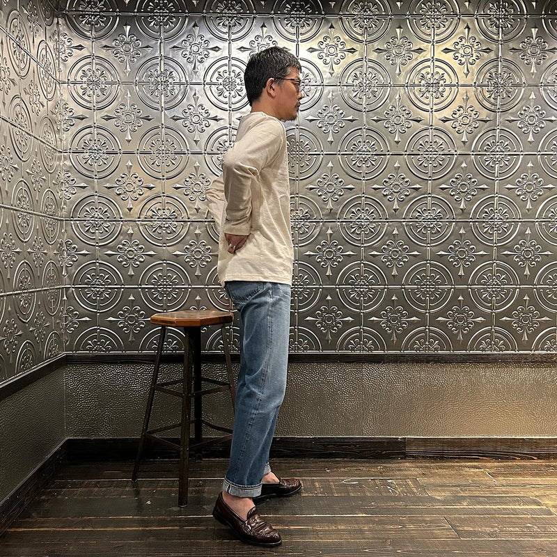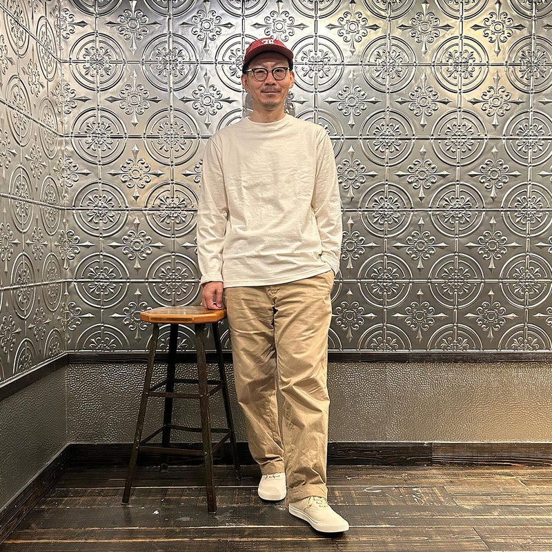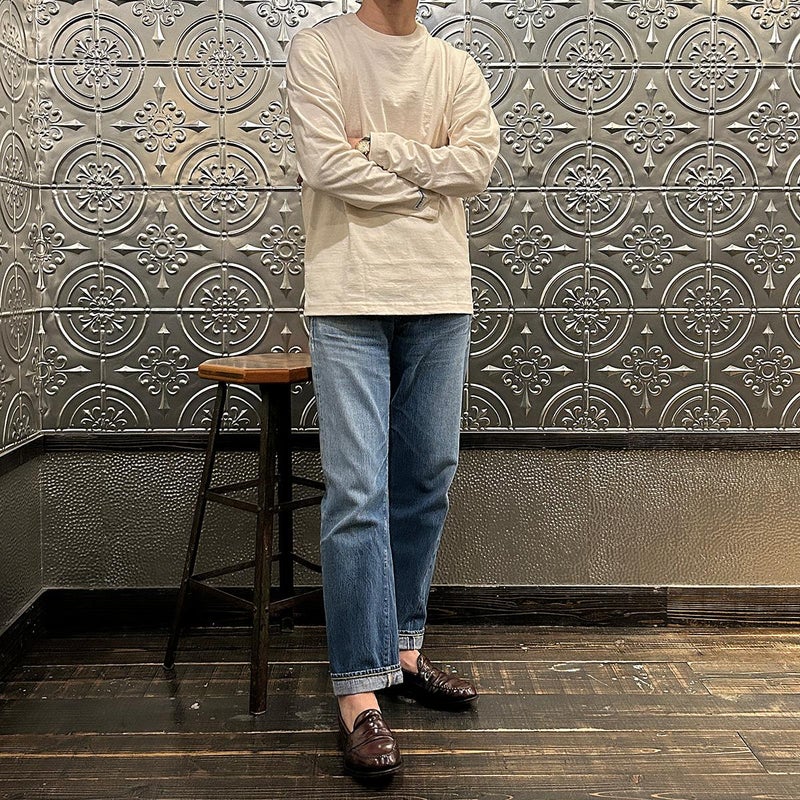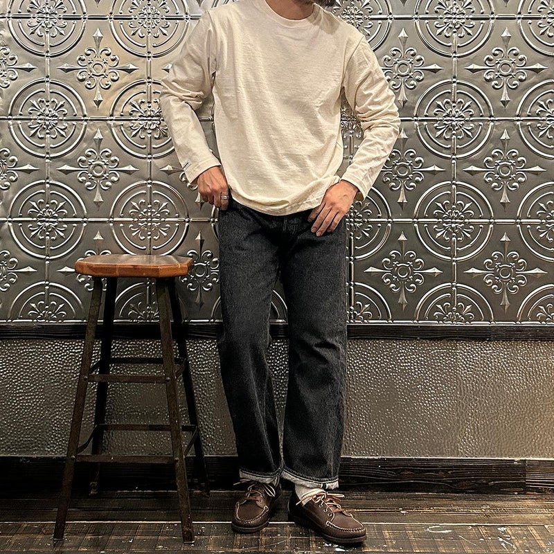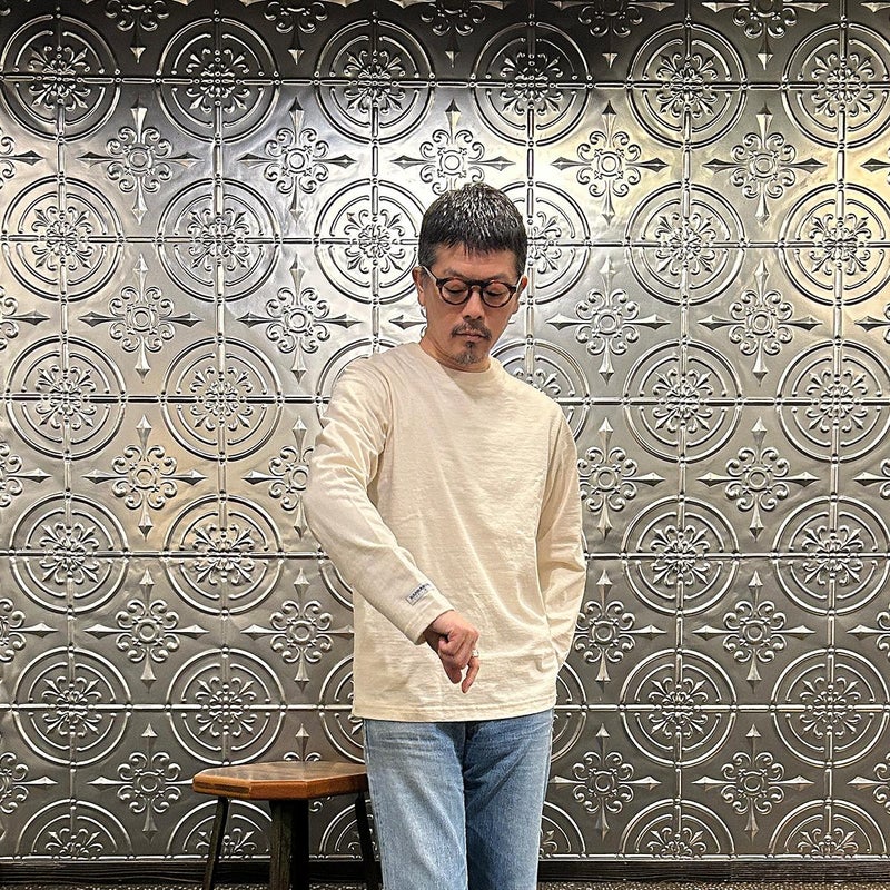 BARBARIAN(バーバリアン)のEXCLUSIVE LIGHT WEIGHT L/S CREW NECK SOLID。当店別注モデルのクルーネックの長袖ラグビーシャツ。サイズ、シルエットは現行のジャパンフィットのまま。定番の12オンスへヴィーウェイトコットンと同じ糸を使いながら、重量を約30%軽くした8オンスのライトウエイト。袖口のリブをなくすことで普通のロンTとして着易いようにした地味な別注。色もボーダーではなく単色にして様々なスタイルと合わせやすく、デイリーに着倒して頂けます。単体でもインナーとしても長いシーズン活躍してくれるおすすめの1枚。