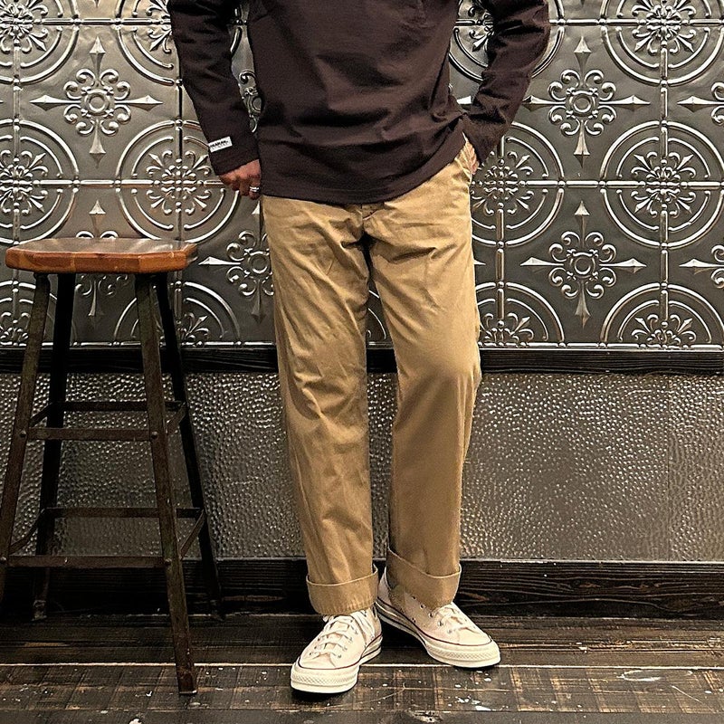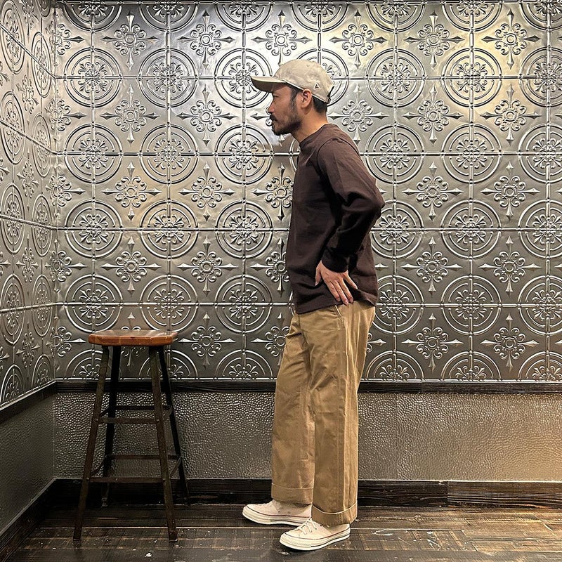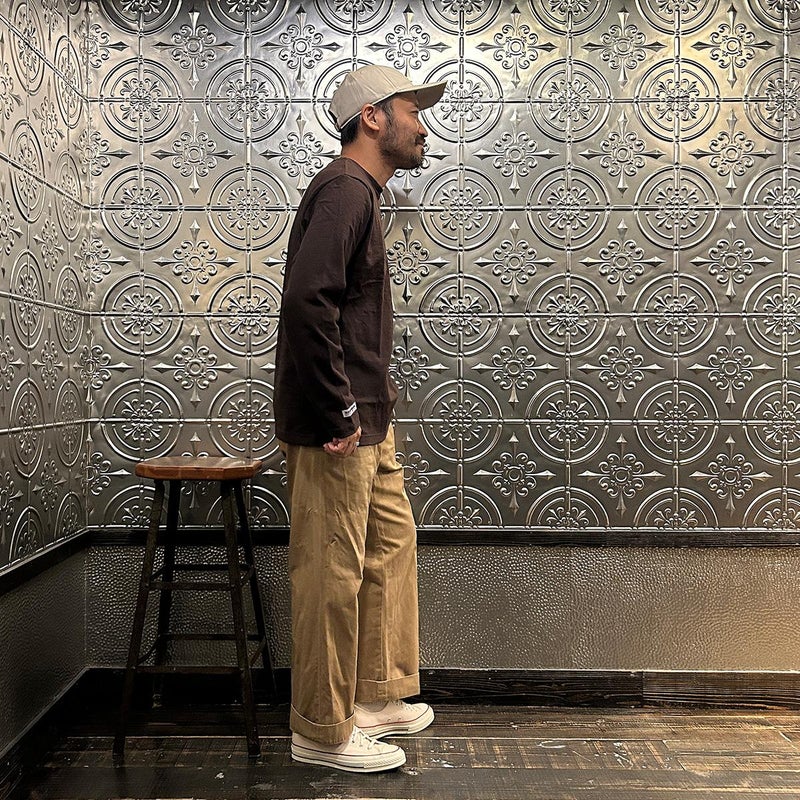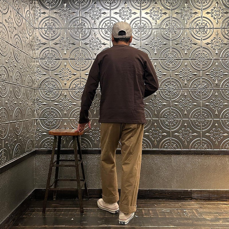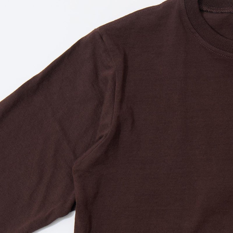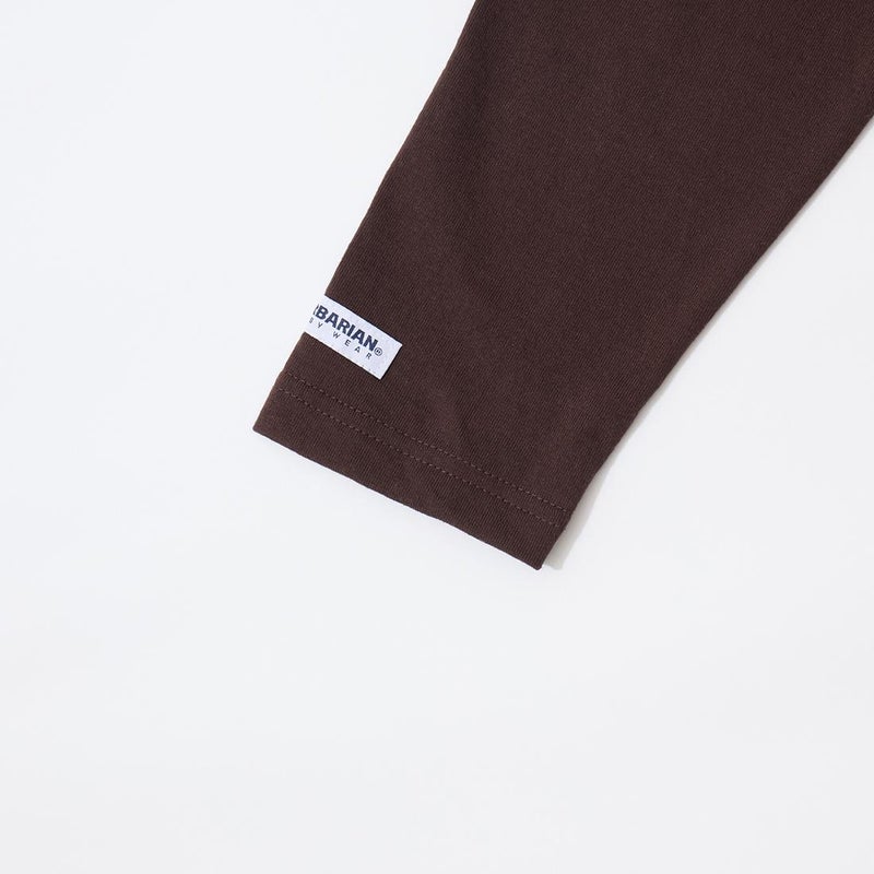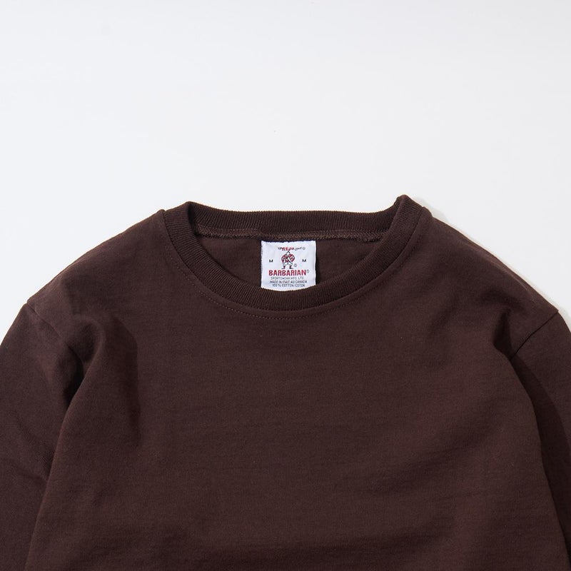 BARBARIAN(バーバリアン)のEXCLUSIVE LIGHT WEIGHT L/S CREW NECK SOLID。当店別注モデルのクルーネックの長袖ラグビーシャツ。サイズ、シルエットは現行のジャパンフィットのまま。定番の12オンスへヴィーウェイトコットンと同じ糸を使いながら、重量を約30%軽くした8オンスのライトウエイト。袖口のリブをなくすことで普通のロンTとして着易いようにした地味な別注。色もボーダーではなく単色にして様々なスタイルと合わせやすく、デイリーに着倒して頂けます。単体でもインナーとしても長いシーズン活躍してくれるおすすめの1枚。