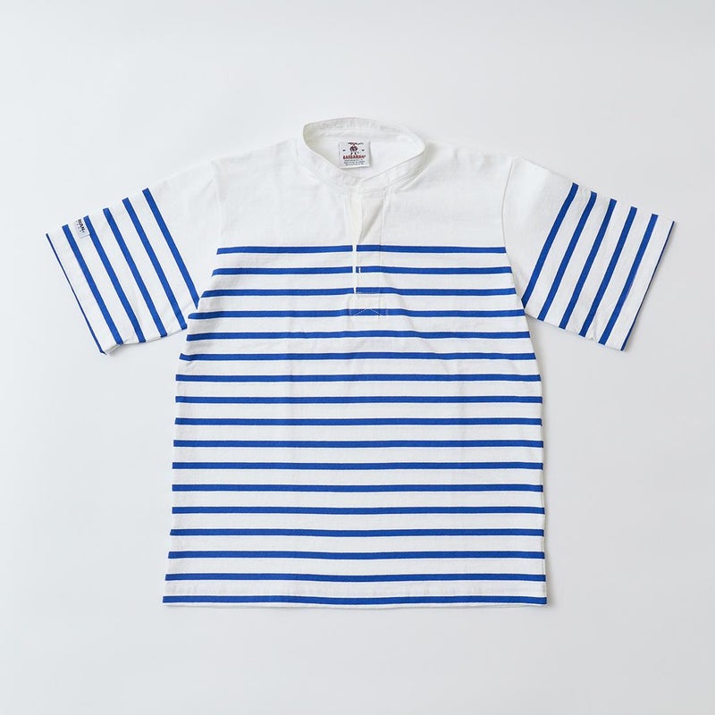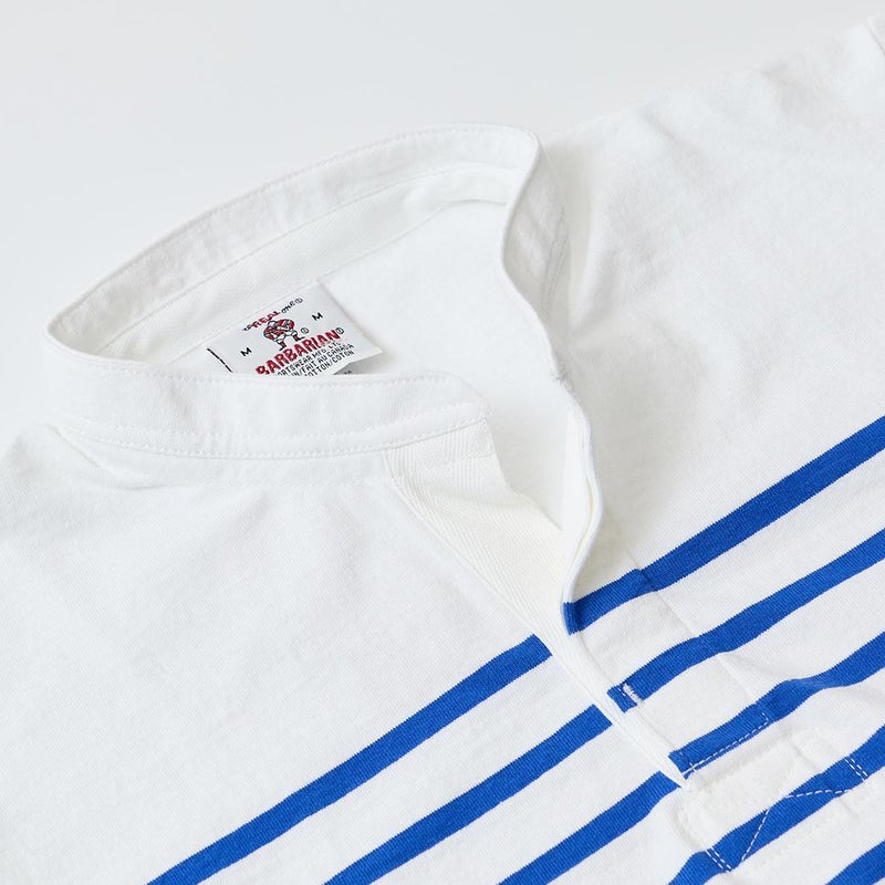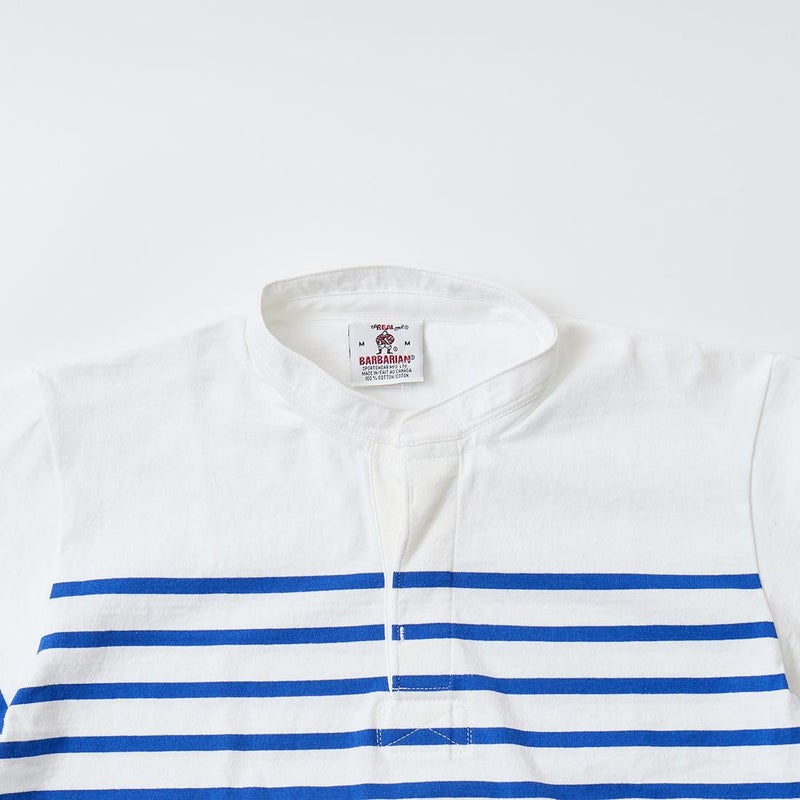 5. BARBARIAN (バーバリアン) S/S LIGHT WEIGHT HENLEY NECK SHIRT - WHITE_ROYAL
