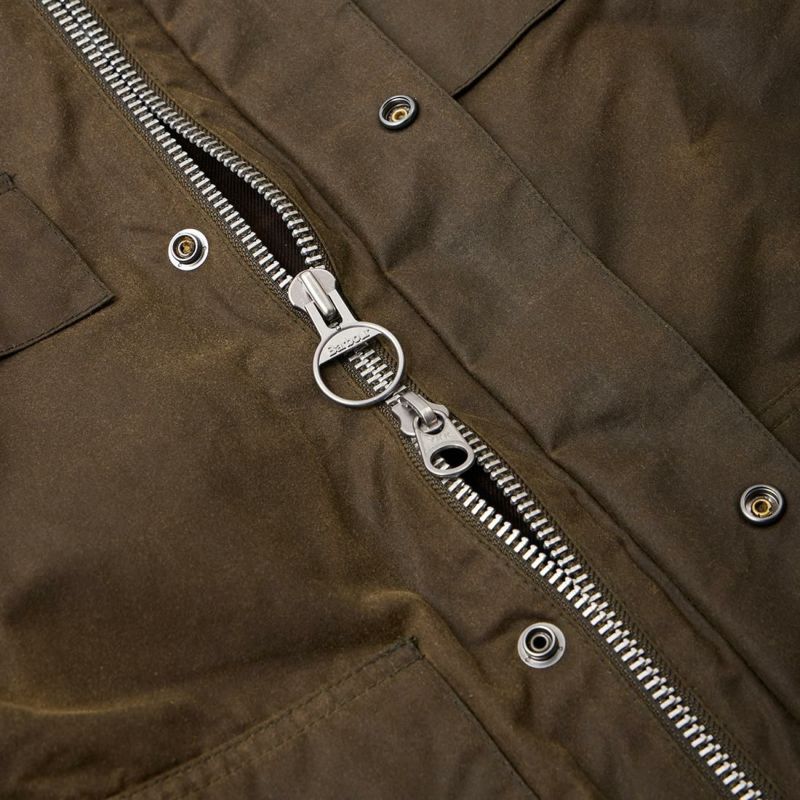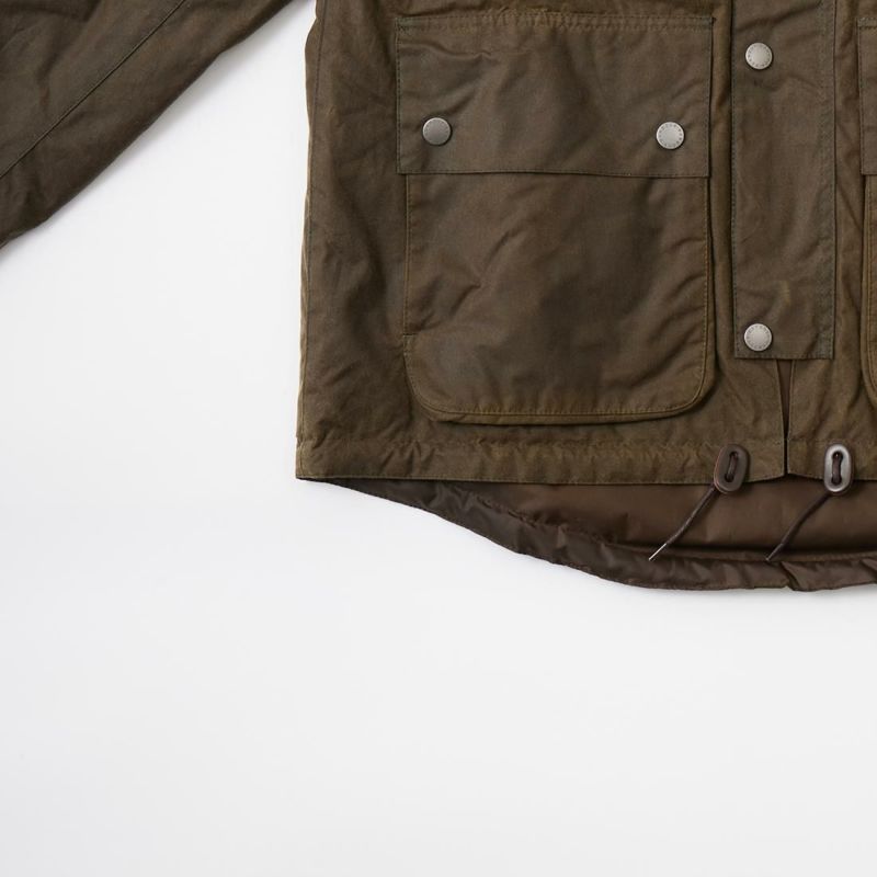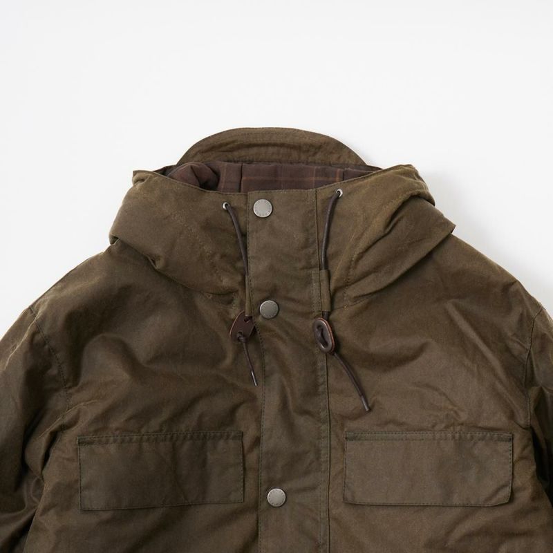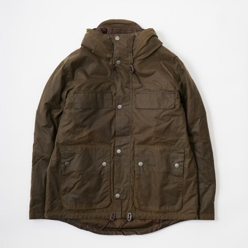BARBOUR(バーブァー)のRE ENGINEERED DURHAM WAX JACKET。古き良きヴィンテージ、カントリースタイルを現代的にアップデートしたRe-Engineeredコレクション。ワックスコットンを使用したマウンテンパーカータイプ。胸の左右にフラップ付きのパッチポケット。腰の左右にも大きめサイズのフラップ付きパッチポケットを装備。腰ポケットの内側にはハンドポケットも装備。フロントはジップとボタンで留める仕様。左の腰ポケットにバブアーの刺繍。中綿が入っており高い保温性。オイルドコットンの経年変化も楽しみな1着。[Barbour Select]